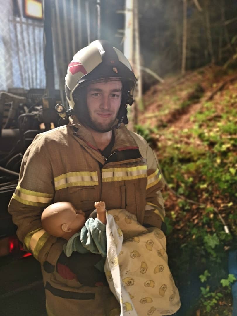 Die Übungsstelle in der Katereckstraße war besonders eng. In diesem Bereich gibt es nur eine einspurige Fahrbahn, links und rechts davon befindet sich eine steile Böschung. Somit musste auf engstem Raum gearbeitet werden.