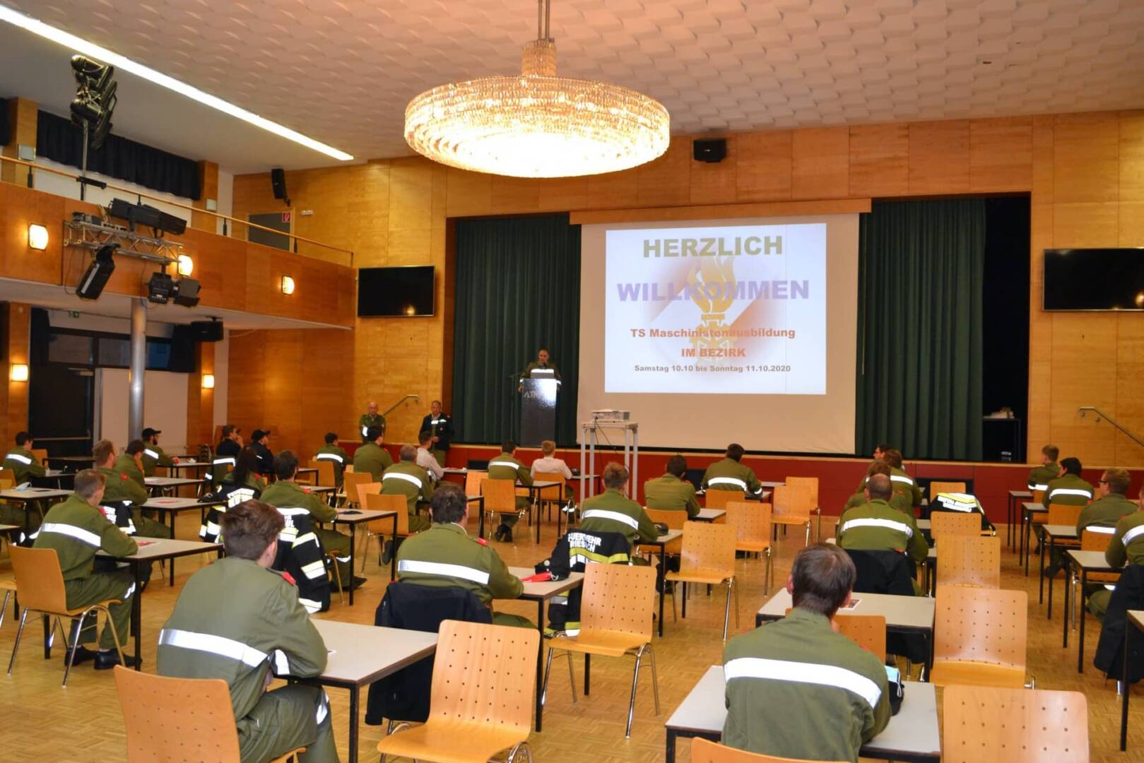 An dem beim Grundkurs bewährten Corona-Sicherheitskonzept wurde festgehalten und so standen beim 2-tägigen Maschinistenlehrgang (10.-11.Okt.2020) Fiebermessungen am Plan. Diese übernahm Bezirksfeuerwehrkommandant Friedrich Monai persönlich. So mancher Florianijünger, aus einer der 20 teilnehmenden Feuerwehren des Bezirkes St. Veit an der Glan, war davon in den frühen Morgenstunden überrascht.