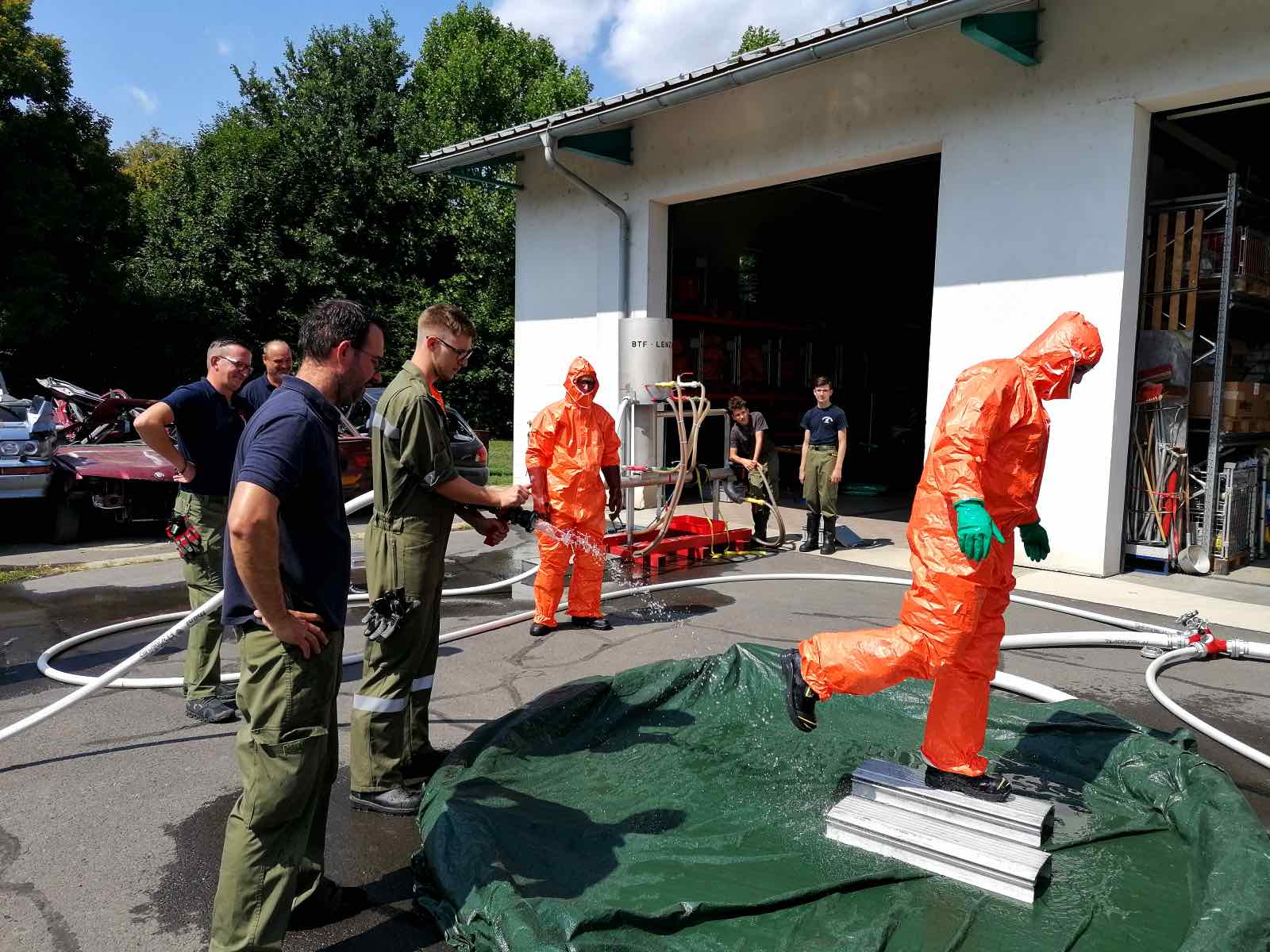 In den Übungseinheiten erstreckten sich die Themen von den Gerätschaften in der eigenen Wehr, Formalexerzieren über Unfallverhütung bis hin zum Löscheinsatz, eine der ureigensten Aufgabe der Feuerwehr.