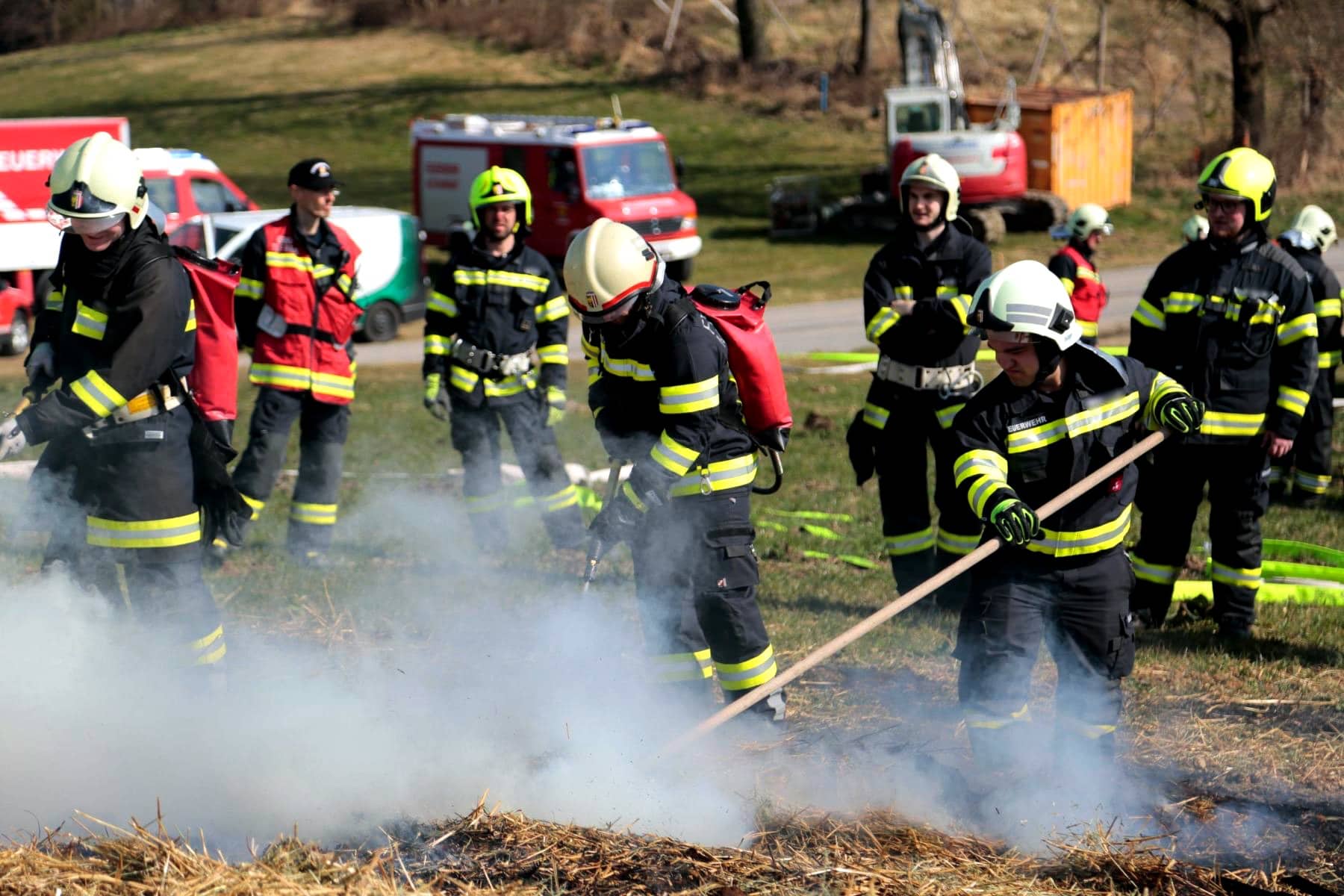 Nicht weniger spannend war schließlich auch die Brandbekämpfung selbst, wenngleich sich diese im Ernstfall ungleich schwieriger gestalten wird, da hier mit tagelangem, schweißtreibendem Arbeiten zu rechnen ist. Aber auch bei dieser Großübung konnte erst nach gut sechs Stunden „Brand aus“ gegeben werden, weil man allen beteiligten Einsatzkräften die Möglichkeit geben wollte, an allen Stationen mitzuwirken. Ein wichtiger Punkt war daher auch die Versorgung der im Einsatz stehenden Männer und Frauen mit Essen und Getränken.