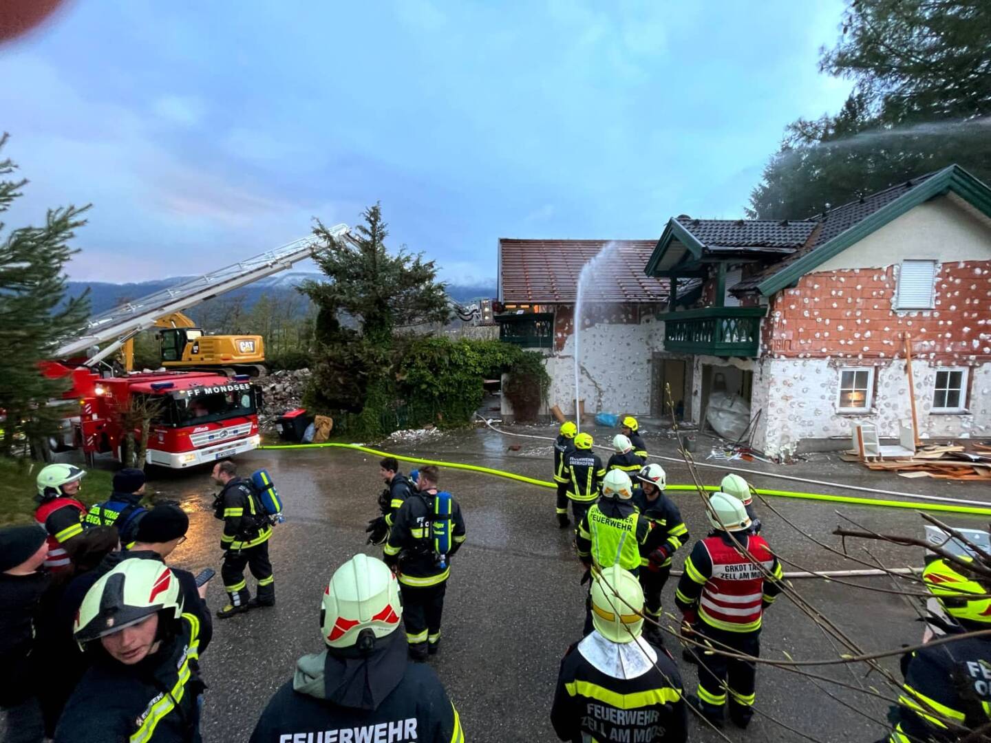 Die Feuerwehr Zell am Moos organisierte eine realistische Übung in einem Abrisshaus. Die Übungsannahme lautet: „Brand Wohnhaus, rund 20 Personen eingeschlossen, Feuer hat auf Nachbarobjekt und Bäume übergegriffen!“ Diese Annahme führte zu einer realistischen Übung für die beteiligten sechs Feuerwehren.