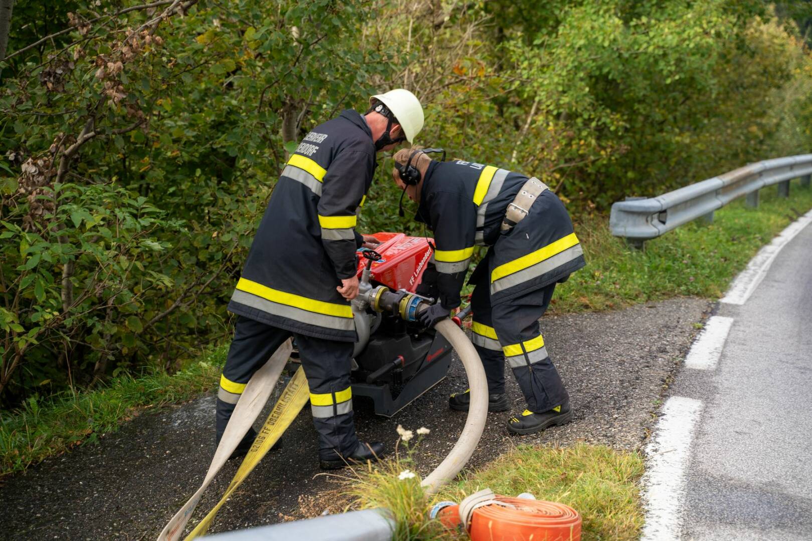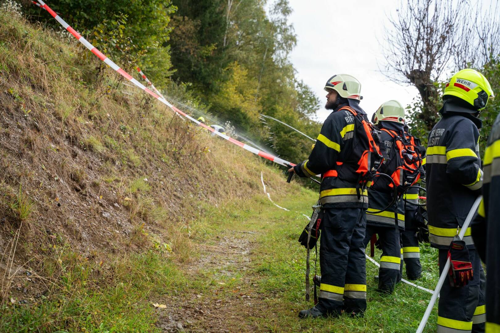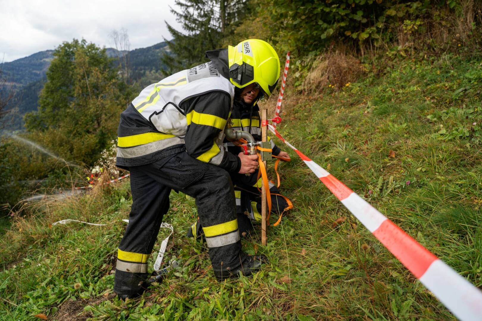 Der dritte und vierte Zug baute jeweils eine Löschwasserversorgung auf. Zug 3 stellte eine Zubringerleitung von St. Peter zur Einsatzörtlichkeit her und übernahm anschließend die weitere Brandbekämpfung auf der rechten Flanke des Brandes. Der vierte Zug baute von Radenthein aus mittels mehreren Tragkraftspritzen eine knapp 1,5 Kilometer Meter lange Förderleitung durch teils sehr steiles Gelände auf. Dabei musste ein Höhenunterschied von ca. 290 Metern überwunden werden.