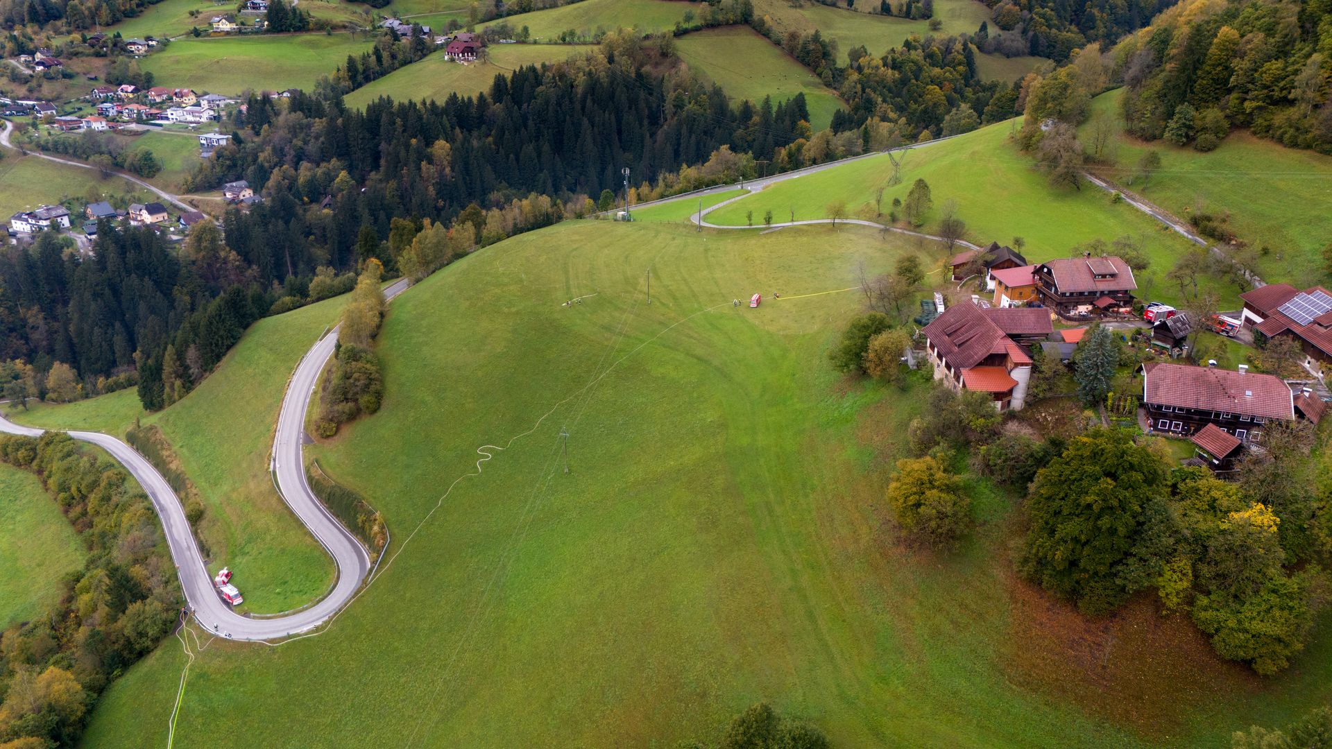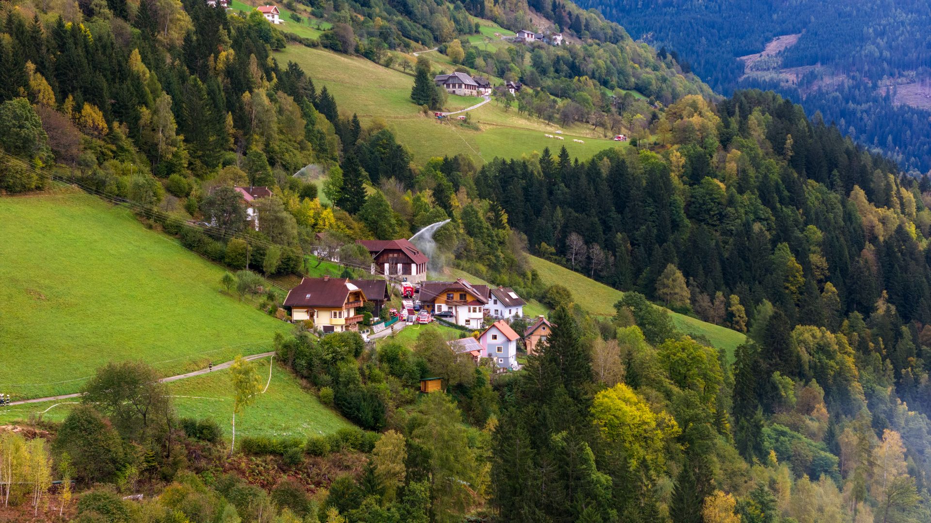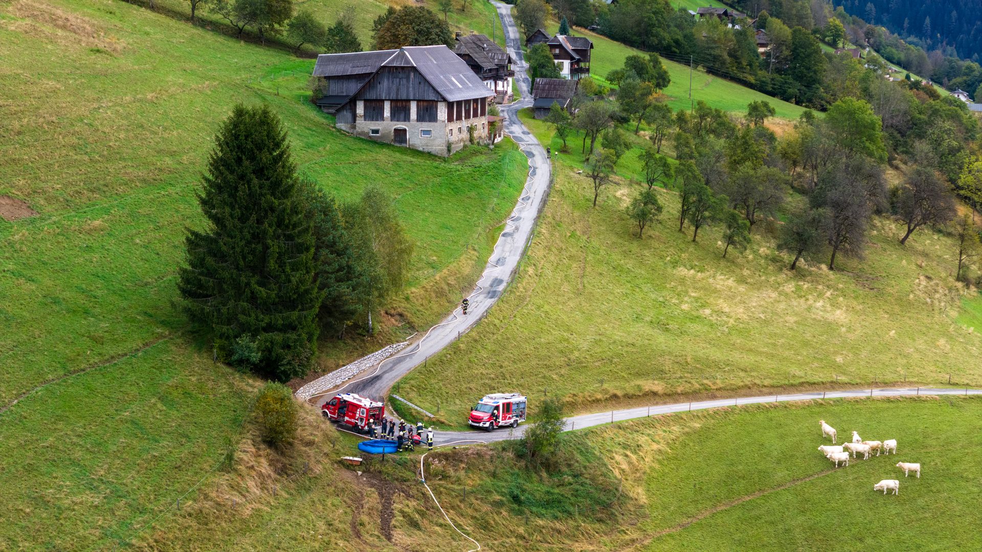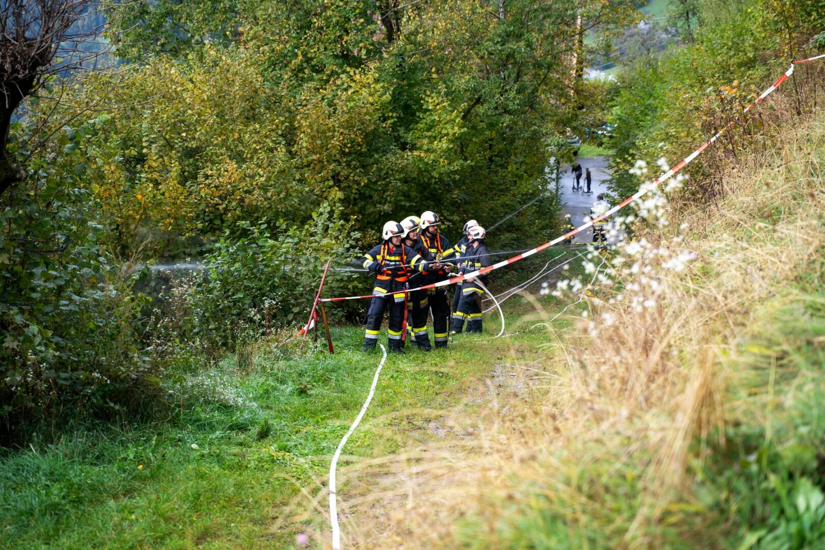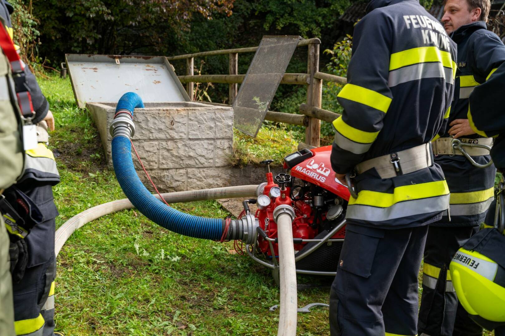 Über 180 Freiwillige übten am Samstag, dem 21. Oktober 2023 für den Ernstfall. Das angenommene Szenario, ein Wirtschaftsgebäudebrand im Ortsteil Frischg, der sich auf die umliegenden Wälder und Wiesen ausbreitet, musste bewältigt werden. Die größte Herausforderung dabei war die Herstellung einer ausreichenden Löschwasserversorgung.