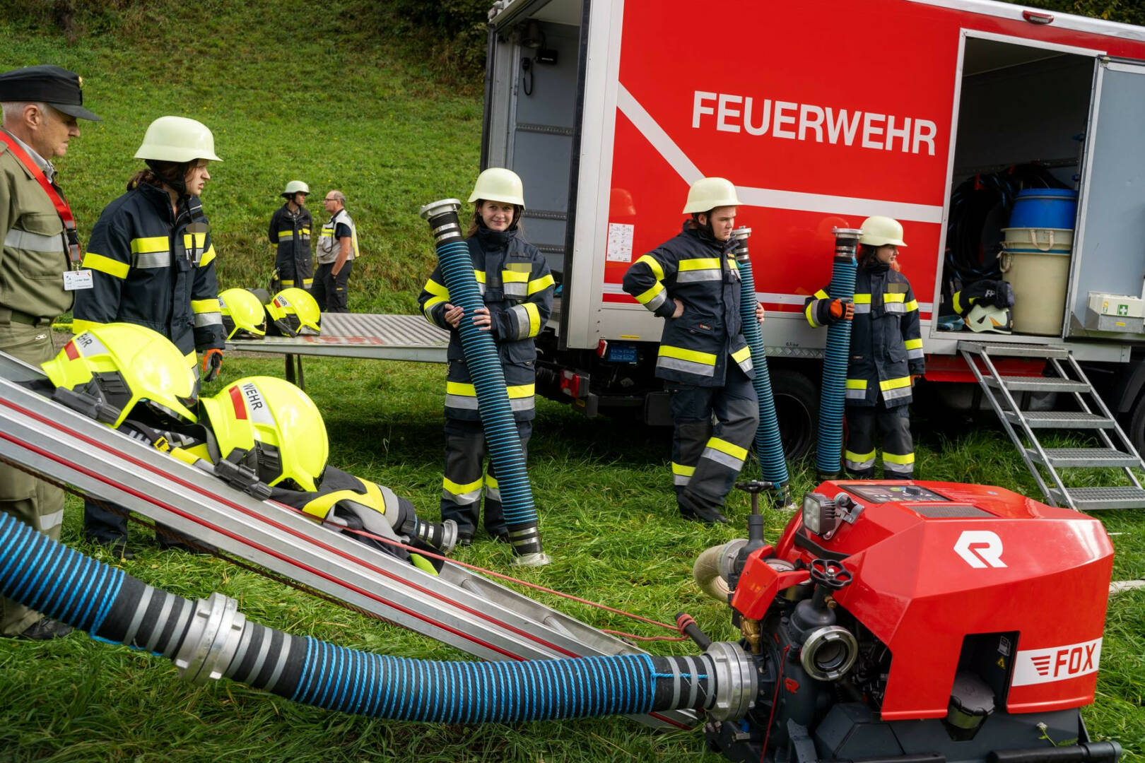 Gesamteinsatzleiter und Abschnittsfeuerwehrkommandant BR Christian Göckler zeigte sich bei der Schlussbesprechung begeistert von den Leistungen der Kameradinnen und Kameraden bei dieser Großübung. Die Löschwasserversorgung war in vergleichsweise kurzer Zeit in ausreichendem Umfang sichergestellt und die Zusammenarbeit aller Einsatzkräfte hat bestens funktioniert. Zahlreiche Erkenntnisse für den Ernstfall konnten so gesammelt werden.