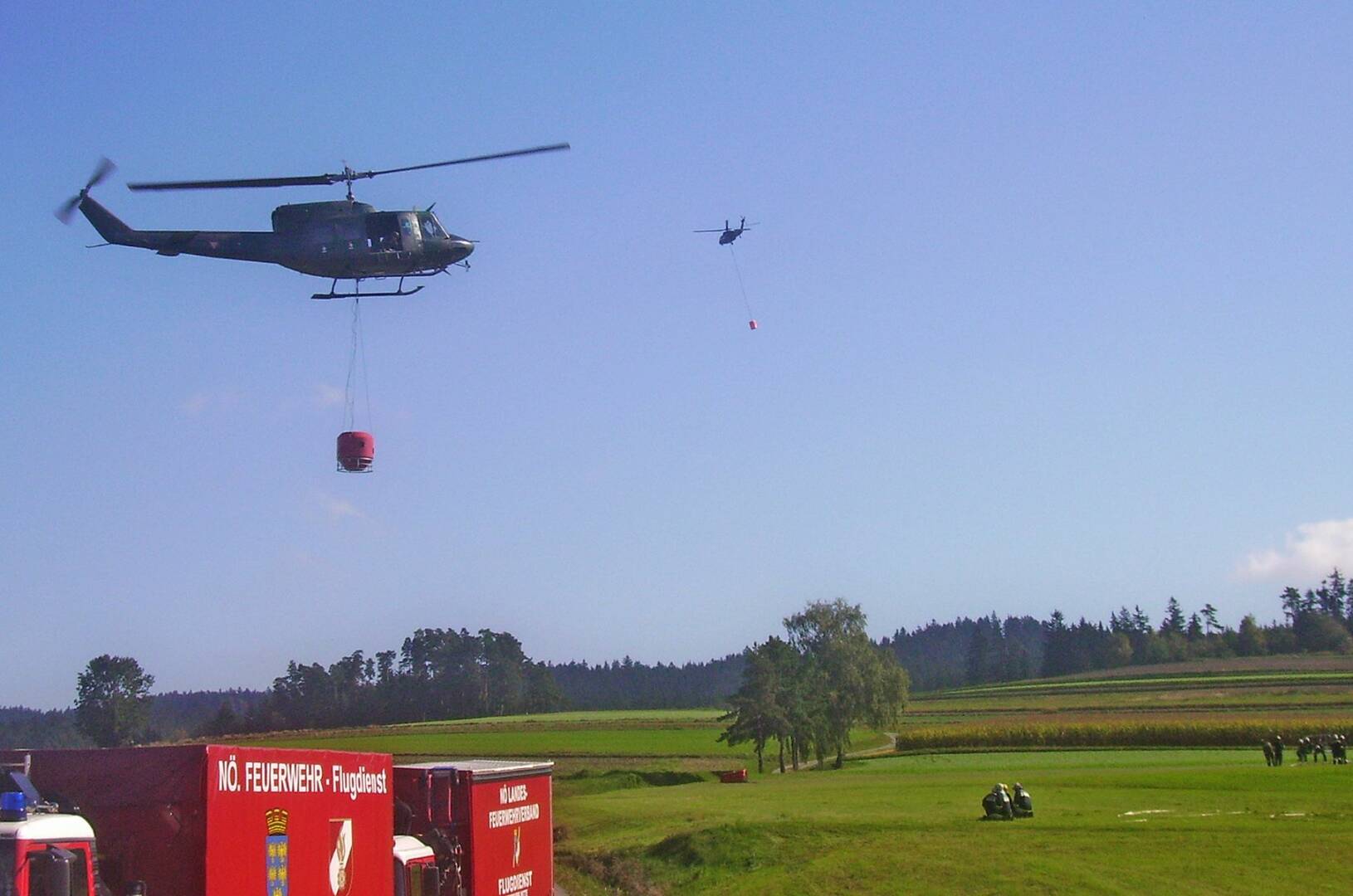 Die letzte Übung mit Beteiligung von Luftfahrzeugen im Bezirk war im September 2009 in Matzles (Gemeinde Waidhofen an der Thaya).