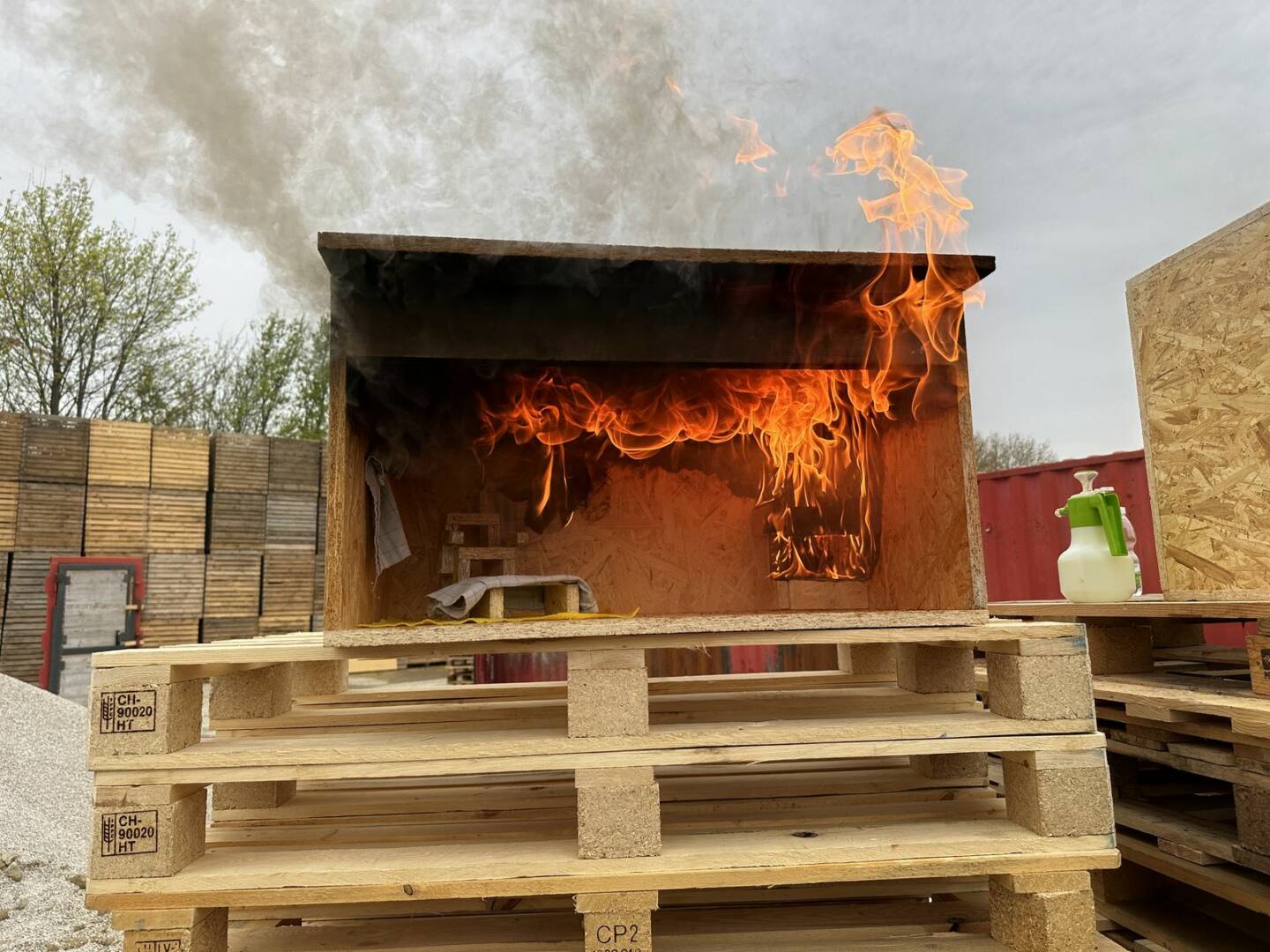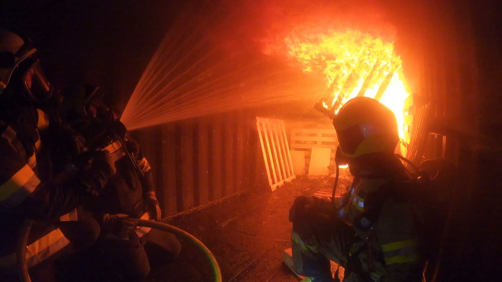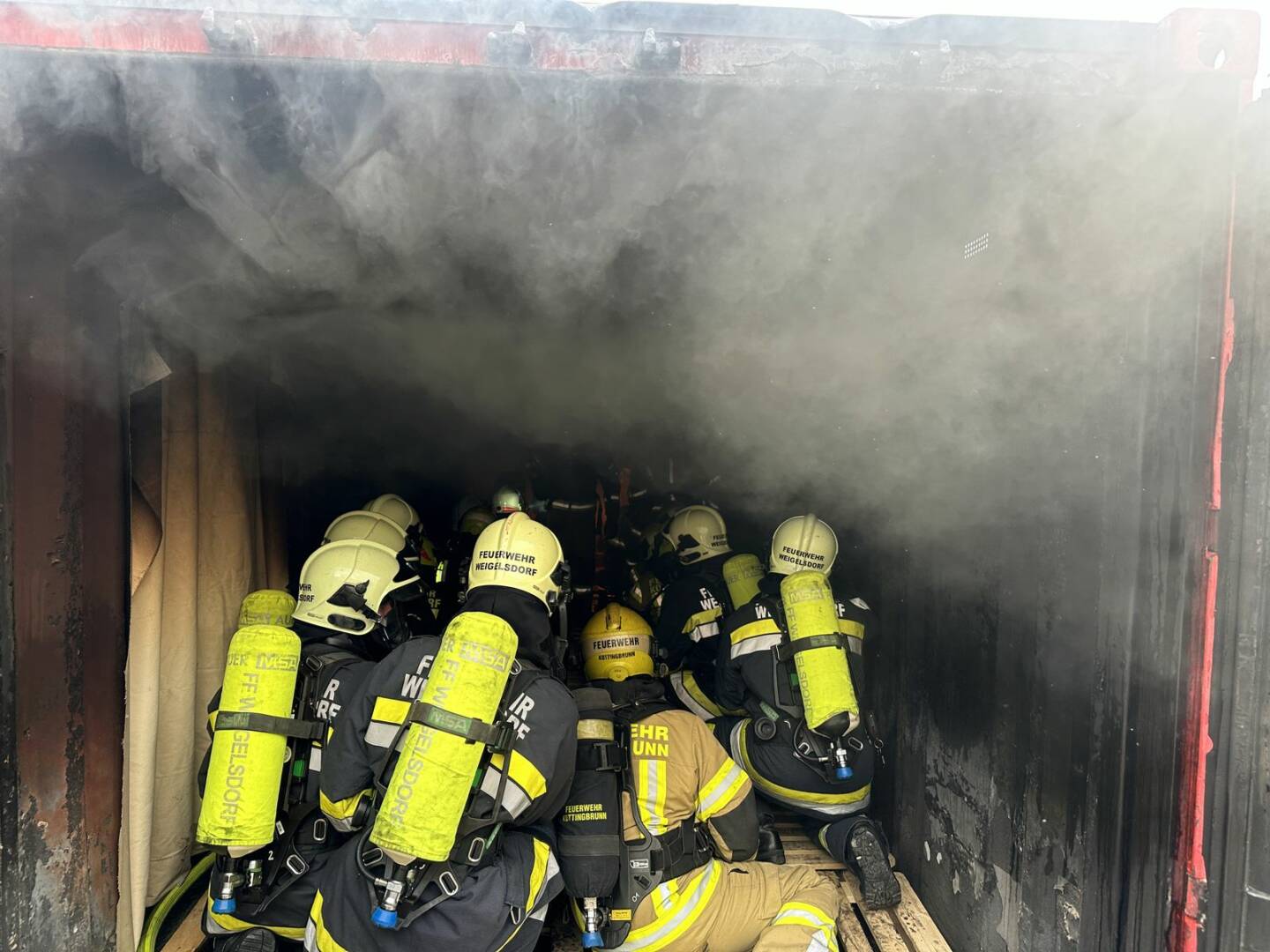 Als Höhepunkt stand der Brandcontainer im Mittelpunkt. Dieser wurde mit Paletten befeuert und zeigte den eingesetzten Trupps, mit welchen Temperaturen und Gefahren diese in einem Innenangriff konfrontiert werden können. In einem anderen Teil der Containeranlage musste anschließend unter reellen Bedingungen eine Übungspuppe gerettet und ein Brand abgelöscht werden.