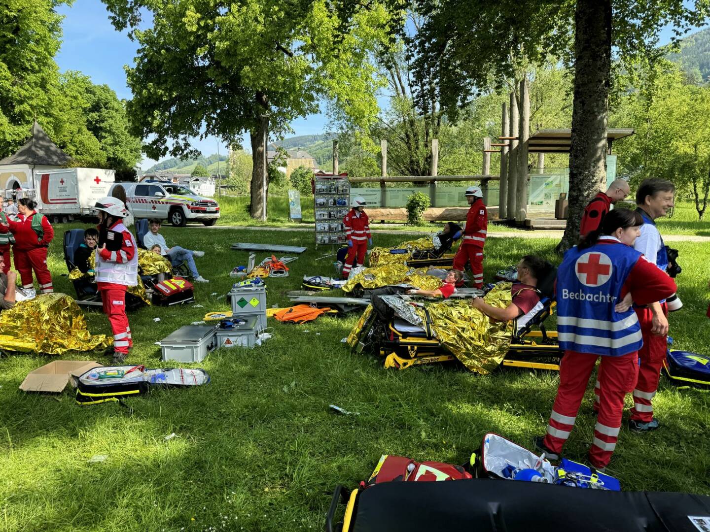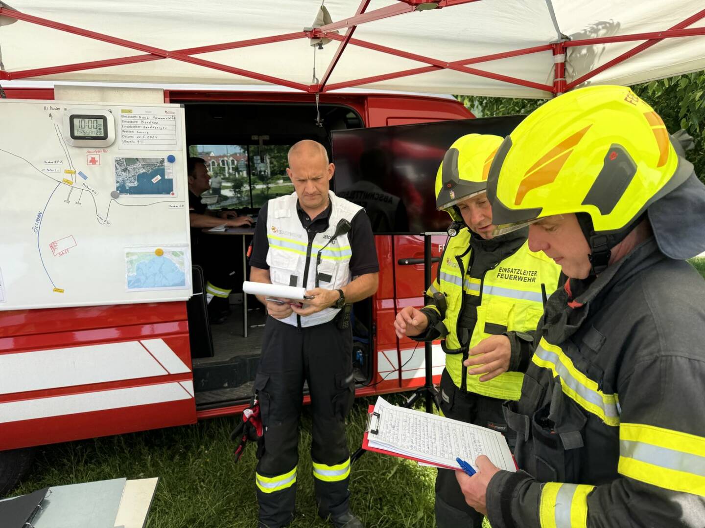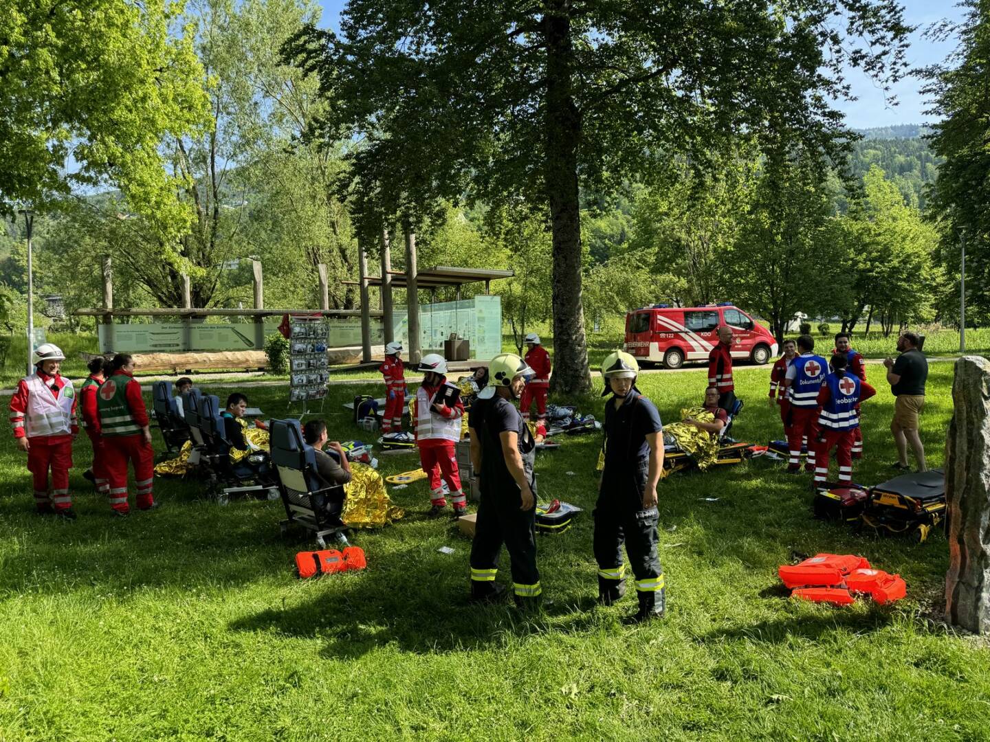 Die Übung wurde durch eine übergreifende gemeinsame Einsatzleitung der Einsatzorganisationen koordiniert und durch rund 100 Einsatzkräfte erfolgreich abgearbeitet.