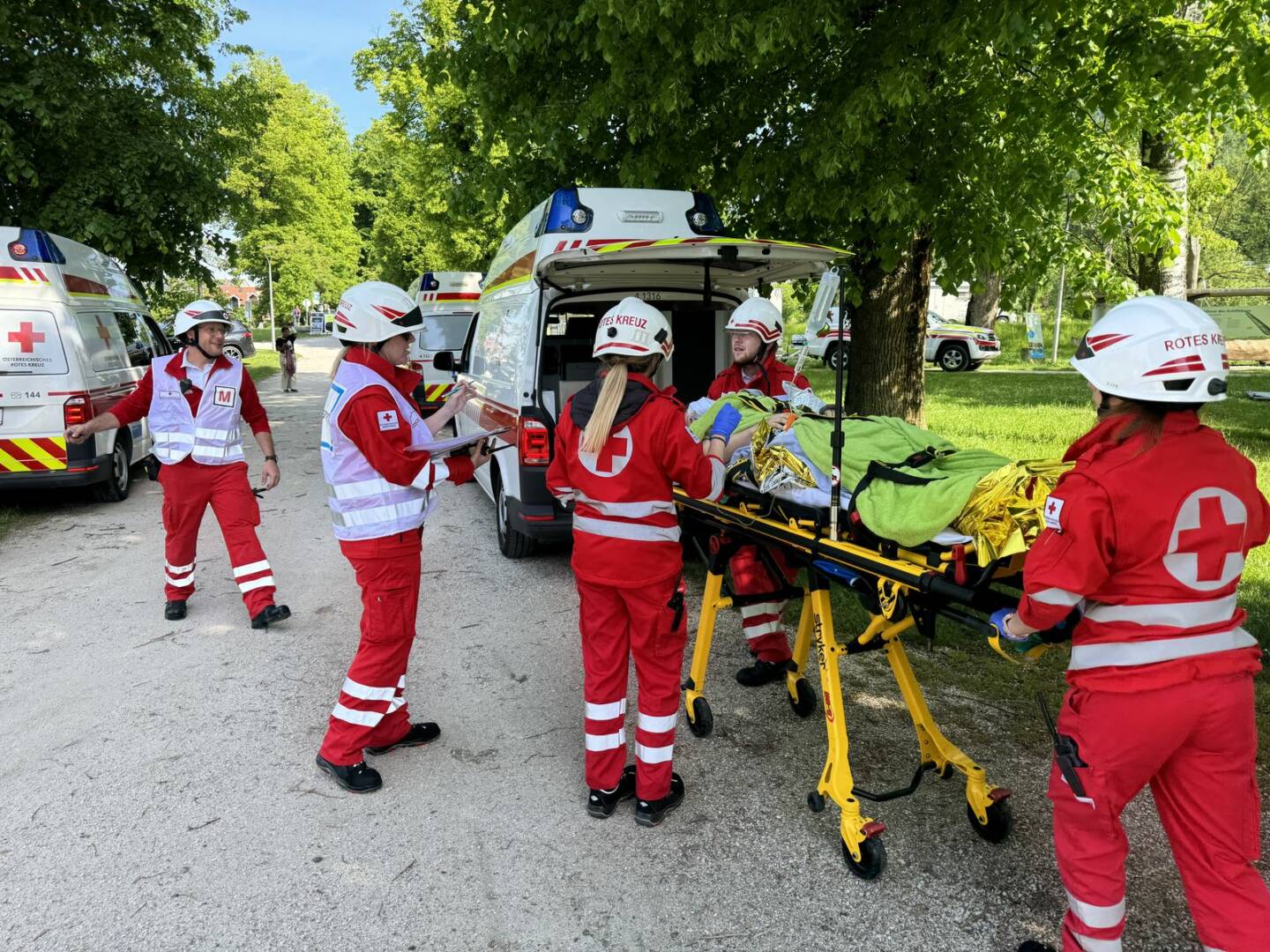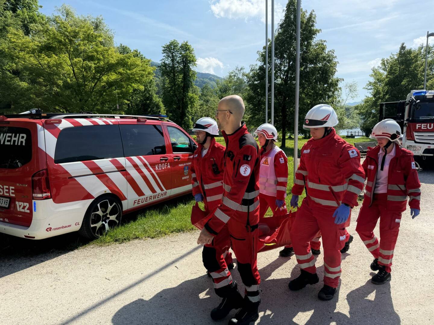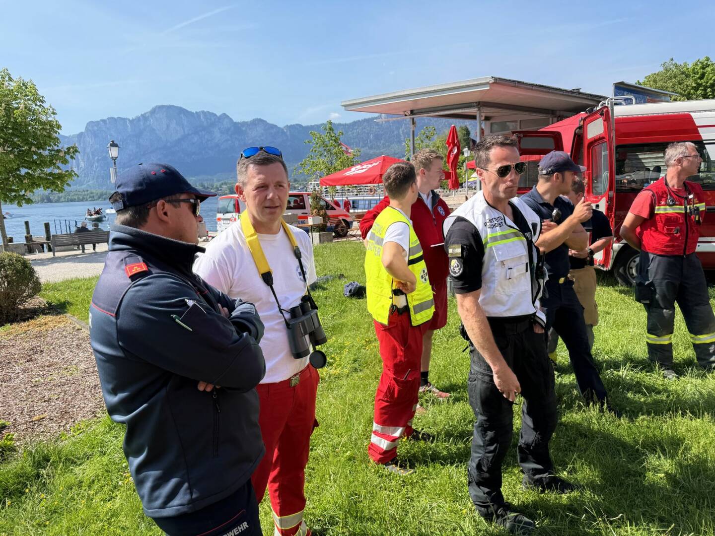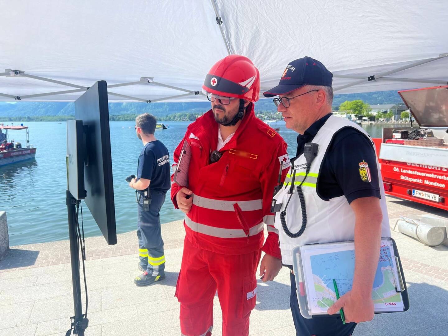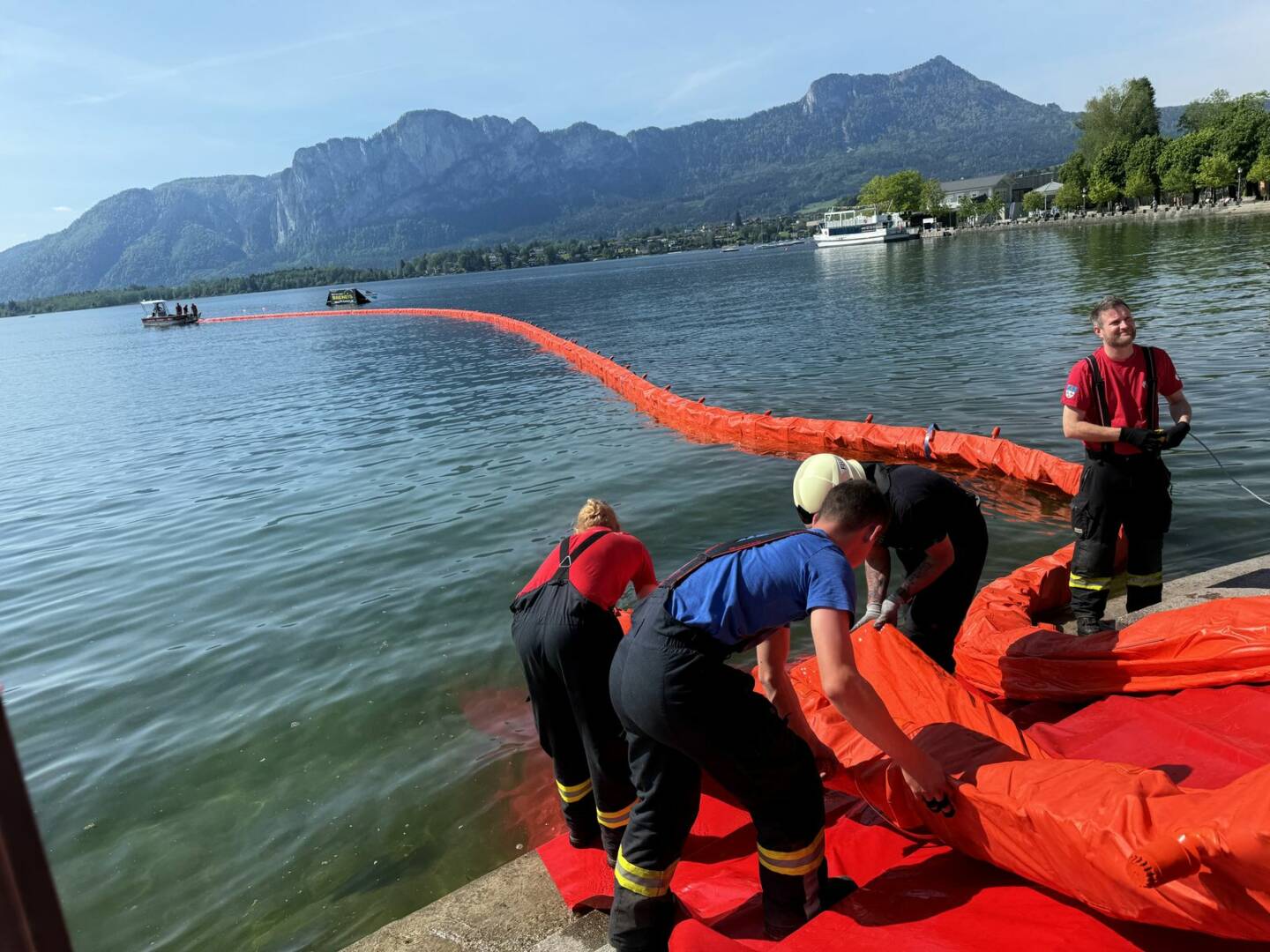 Am Samstag, den 11. Mai 2024 übten die Einsatzkräfte der Feuerwehr, des Roten Kreuzes und der Wasserrettung gemeinsam am Mondsee. Die Übungsannahme für die rund 100 Einsatzkräfte und rund 30 Statisten lautete: „Brand eines Ausflugsschiffs am Mondsee, Personen werden vermisst!“