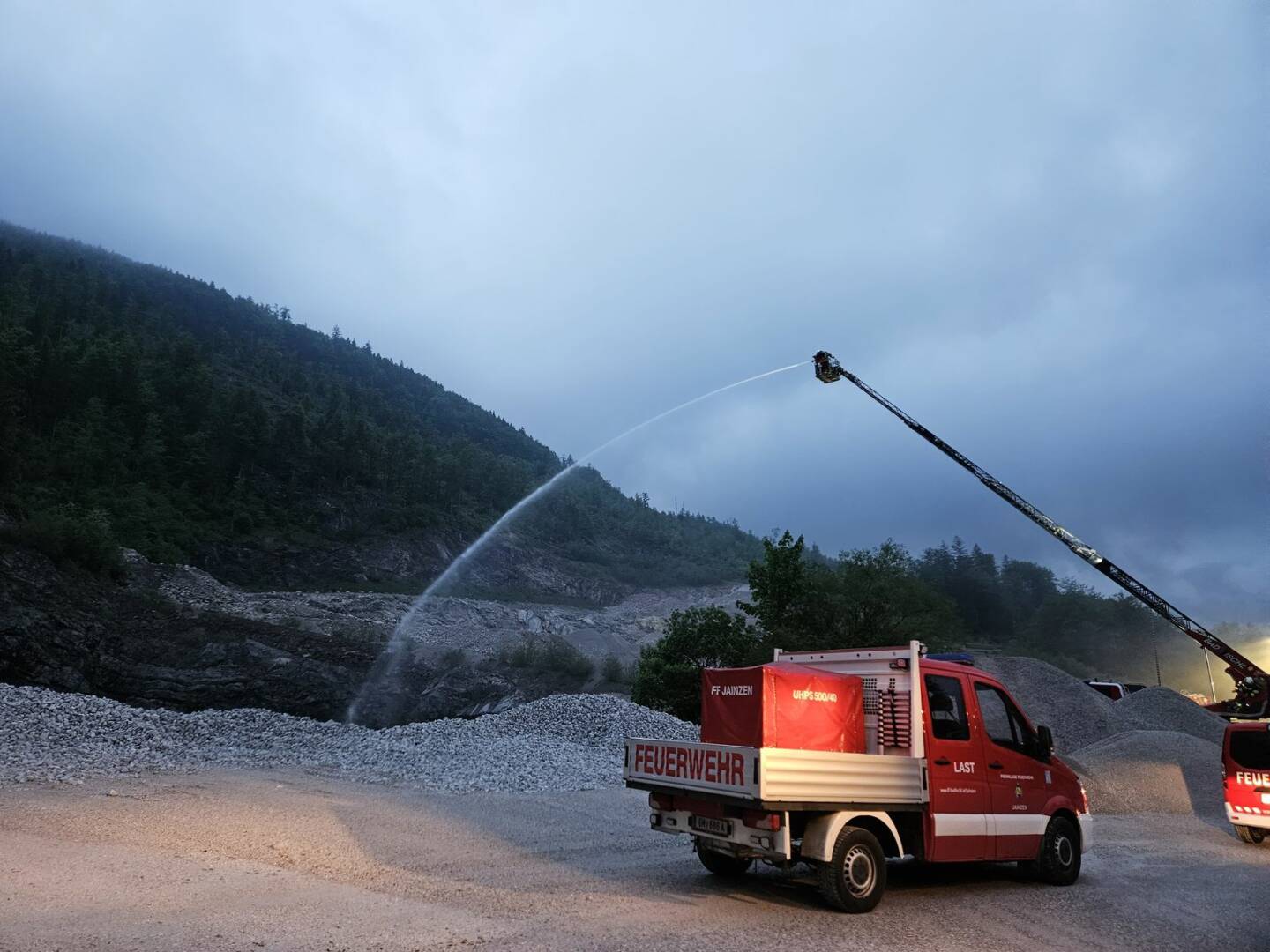 Um den Brand einzudämmen und die insgesamt neun vermissten Arbeiter schnellst möglich zu finden, wurden insgesamt fünf Atemschutztrupps in den Innenangriff entsandt. Um die leeren Atemluftflaschen der Geräteträger vor Ort befüllen zu können, wurde auch das Atemschutzfahrzeug der Feuerwehr Bad Goisern nachalarmiert.