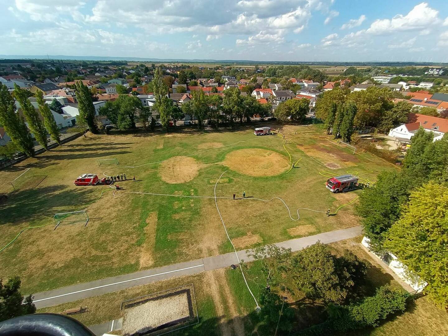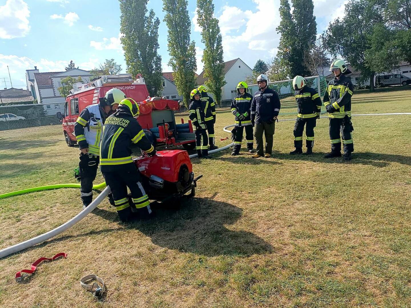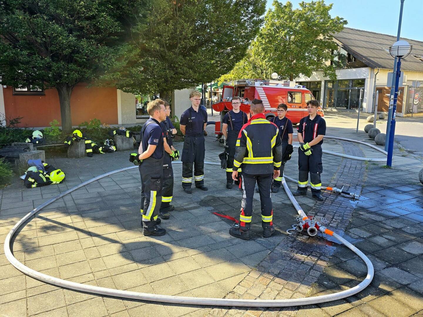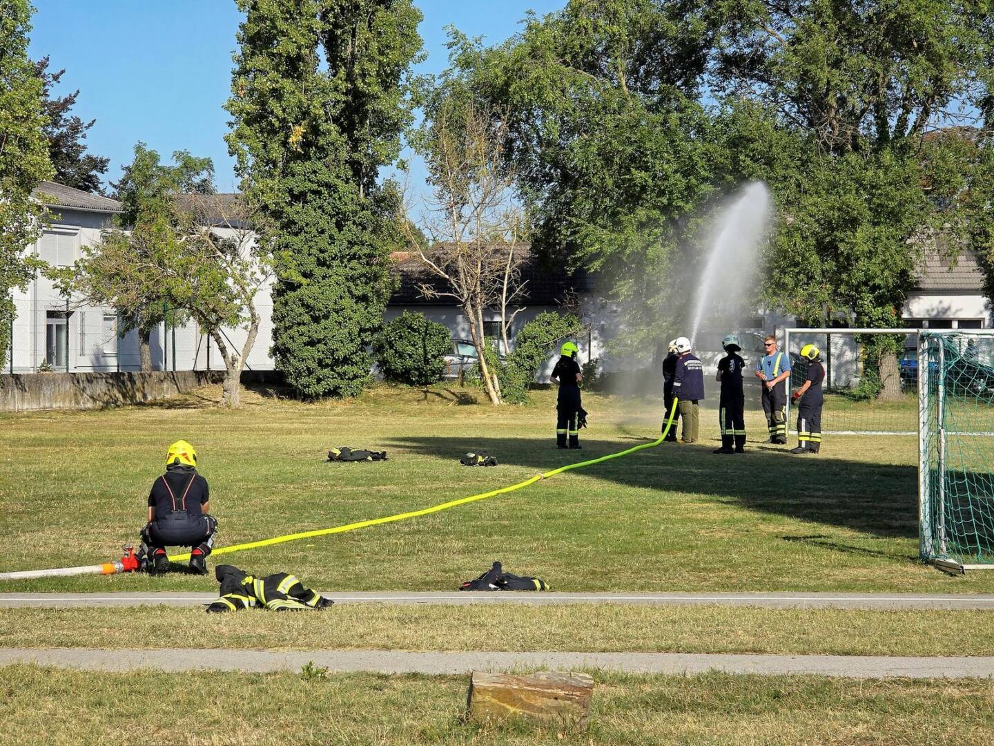 Den Abschluss des Praxistages bildete am Nachmittag eine gemeinsame Übung (Löschangriff mit mehreren Rohren) am Sportplatz neben dem Feuerwehrhaus.
