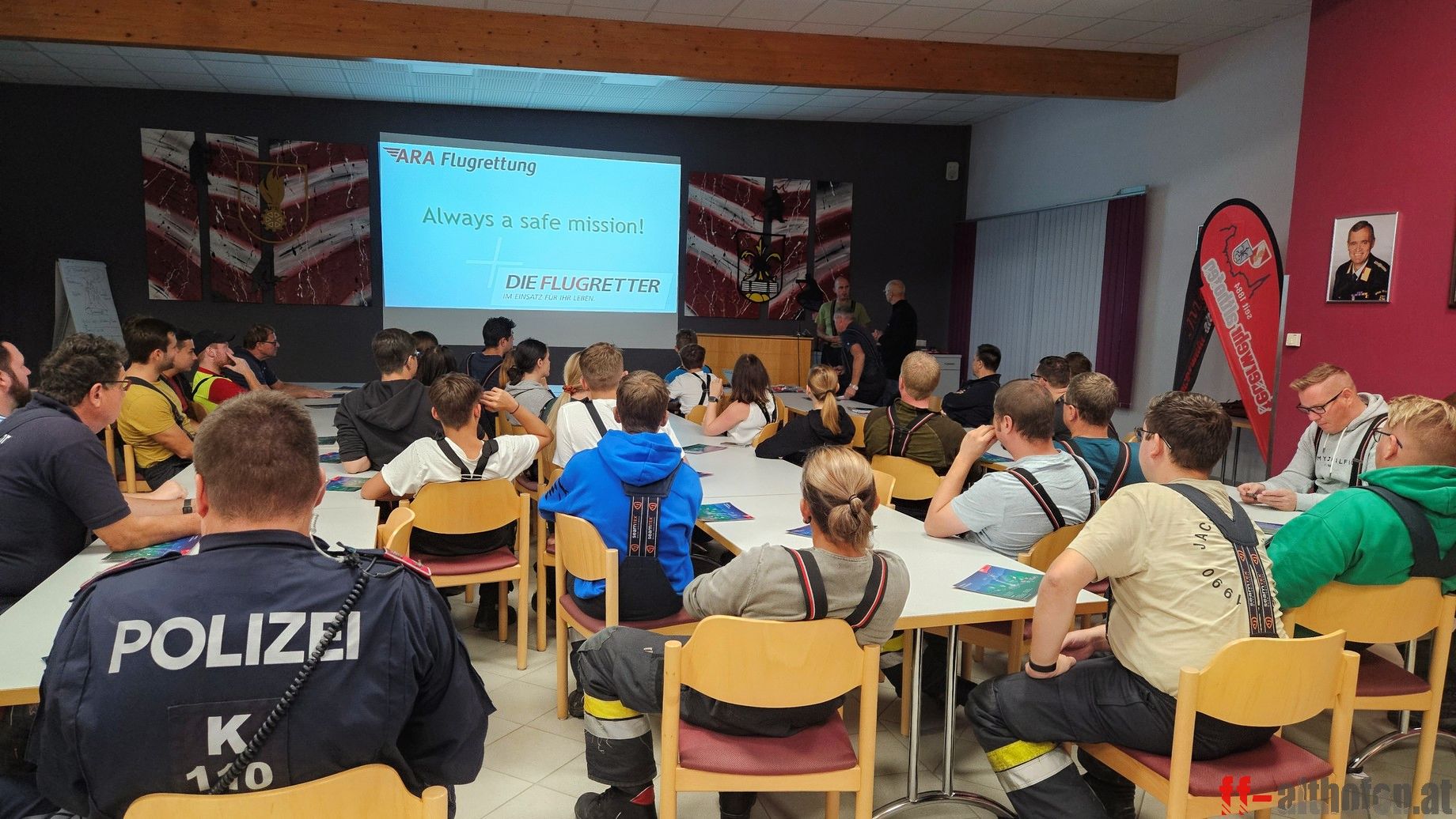 „Der Einsatz bei und mit Fluggeräten“ stand bei unserer letzten Montagsübung am Programm. Zunächst fand in unserem Schulungsraum eine theoretische Einführung statt. Diese übernahm Andreas Grieser, stellvertretender Geschäftsführer und Pilot der ARA-Flugrettung.