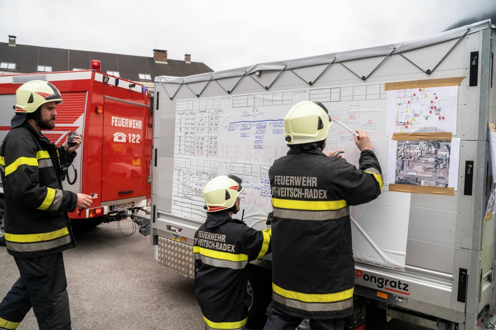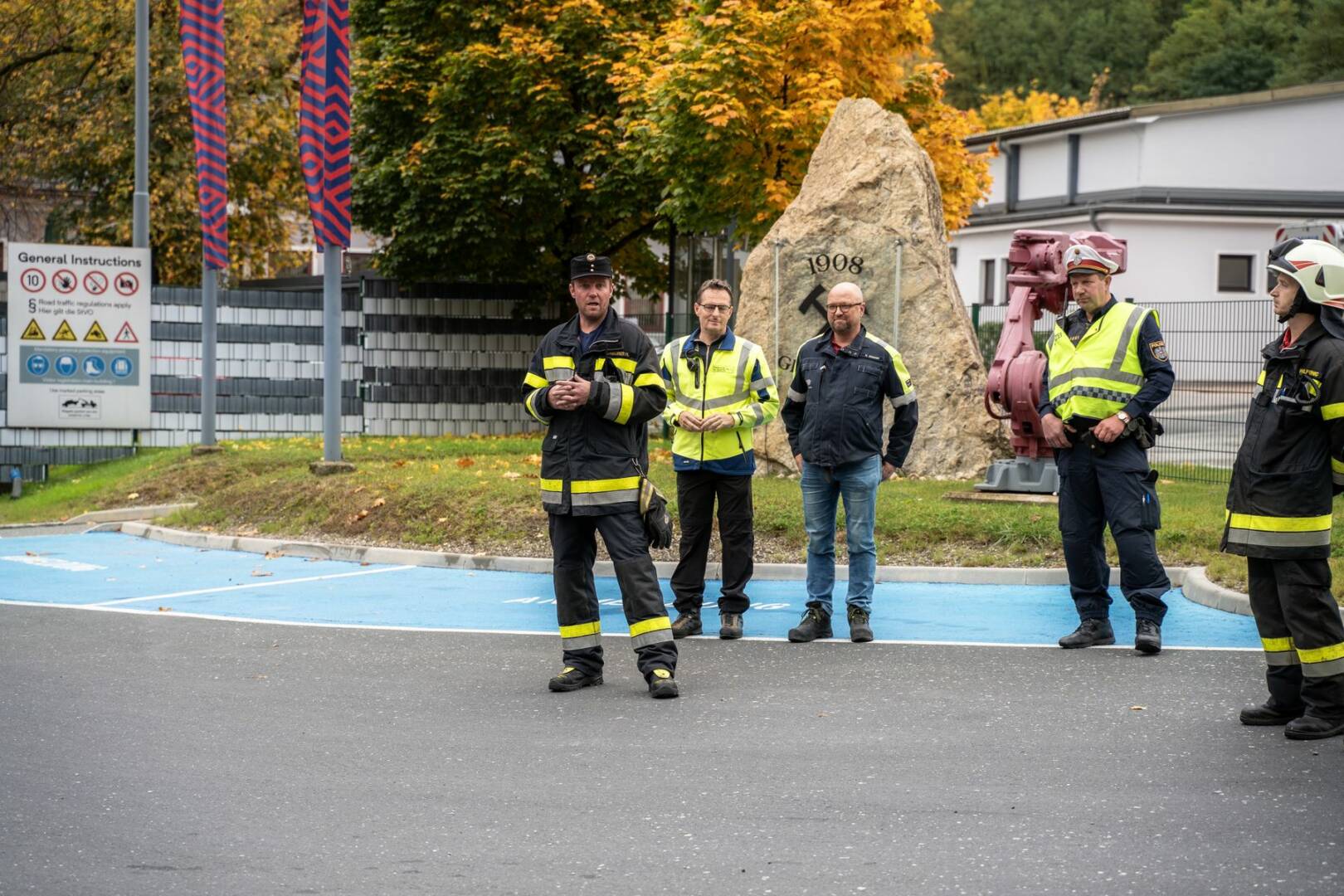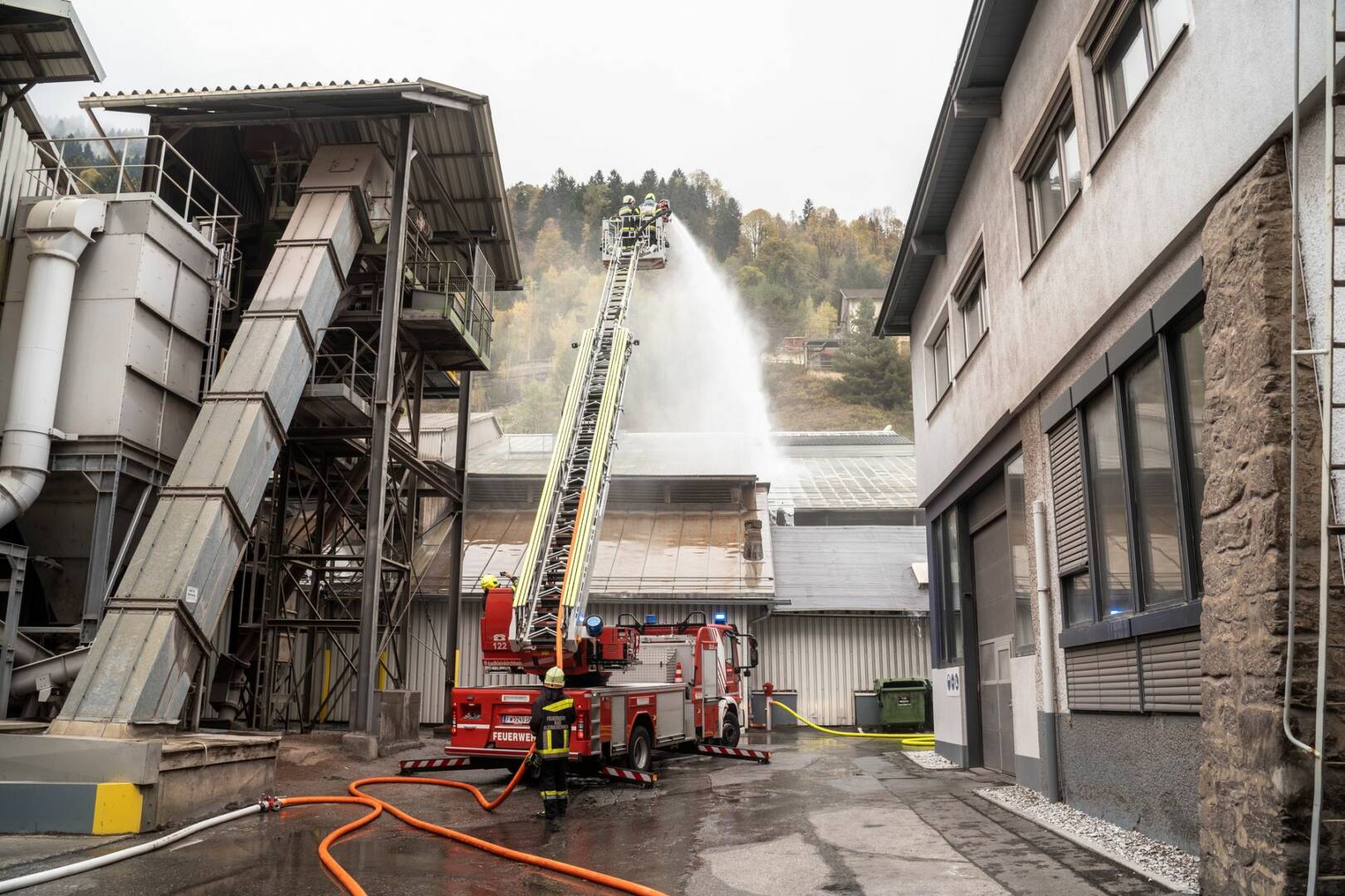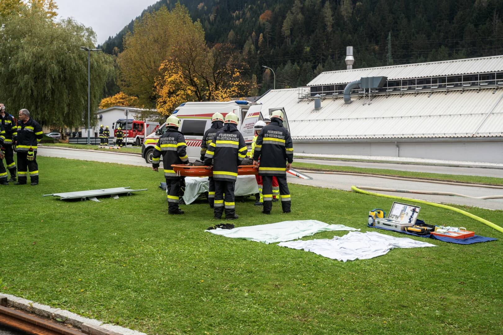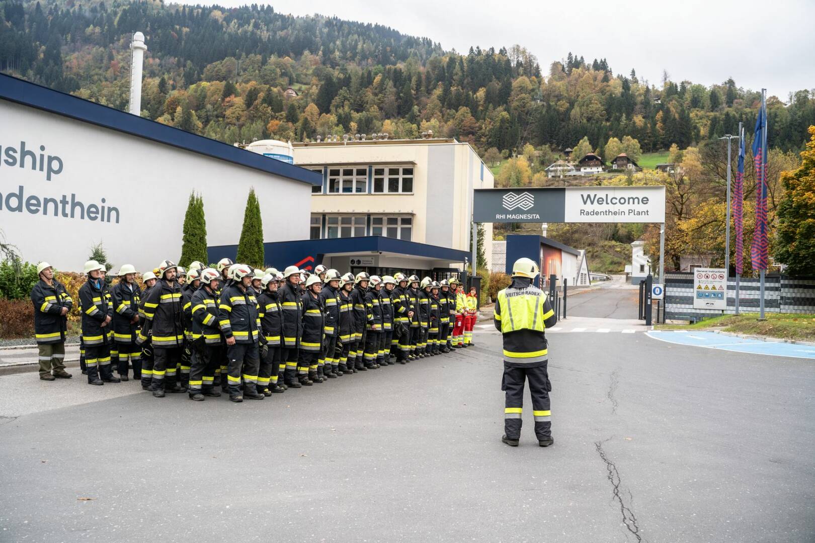 An der von der Betriebsfeuerwehr ausgearbeiteten Übung nahmen rund 120 Mitglieder der Feuerwehren Radenthein, Kaning, Untertweng, St. Peter, Döbriach und Bad Kleinkirchheim sowie das Rote Kreuz mit 14 Fahrzeugen teil. Als Übungsbeobachter durften Abschnittsfeuerwehrkommandant BR Christian Göckler, Gemeindefeuerwehrkommandant HBI Hannes Daborer und der Bürgermeister der Stadtgemeinde Radenthein, Michael Maier, begrüßt werden. Auch der Sicherheitsbeauftragte des Werkes Martin Eregger wohnte der Übung bei.