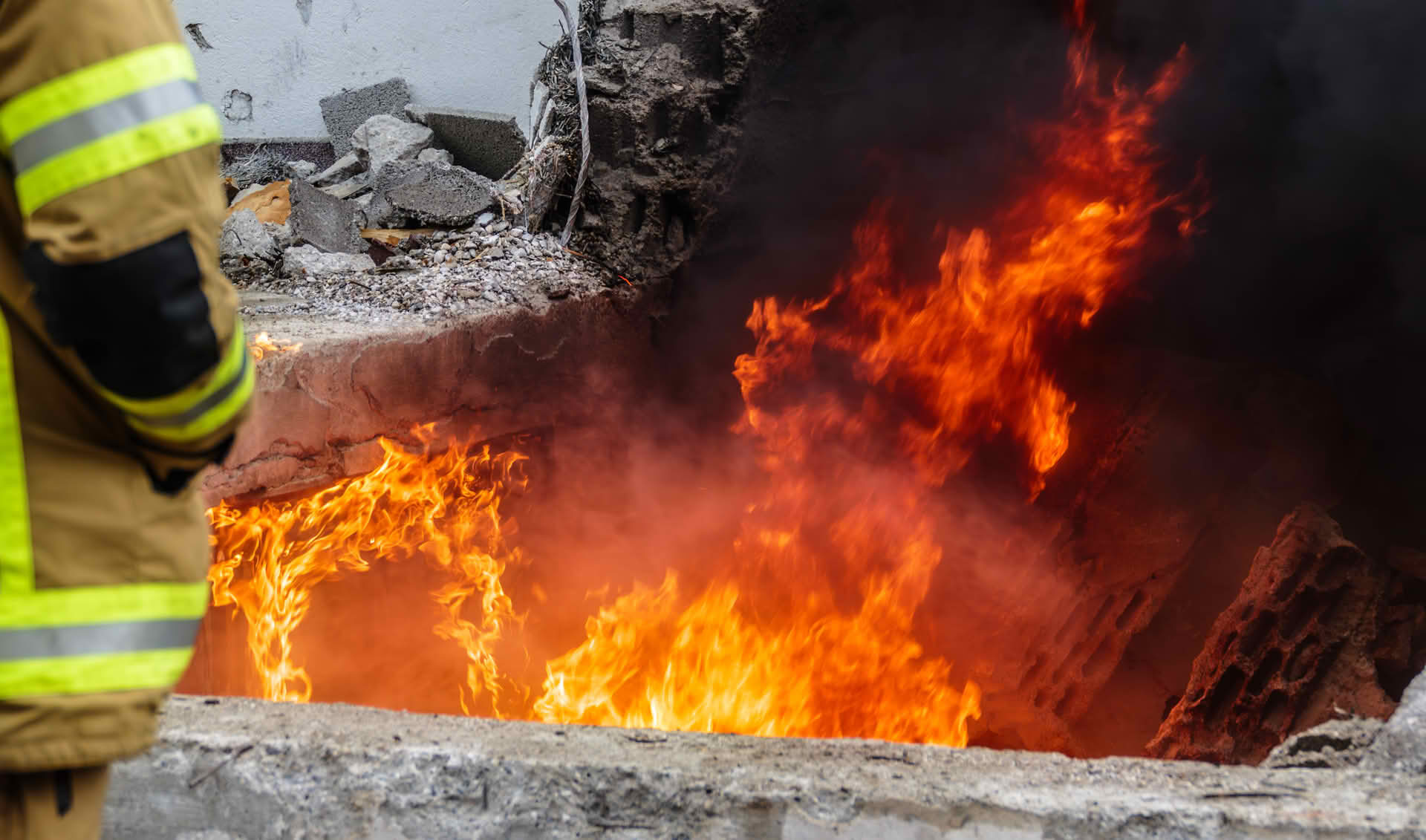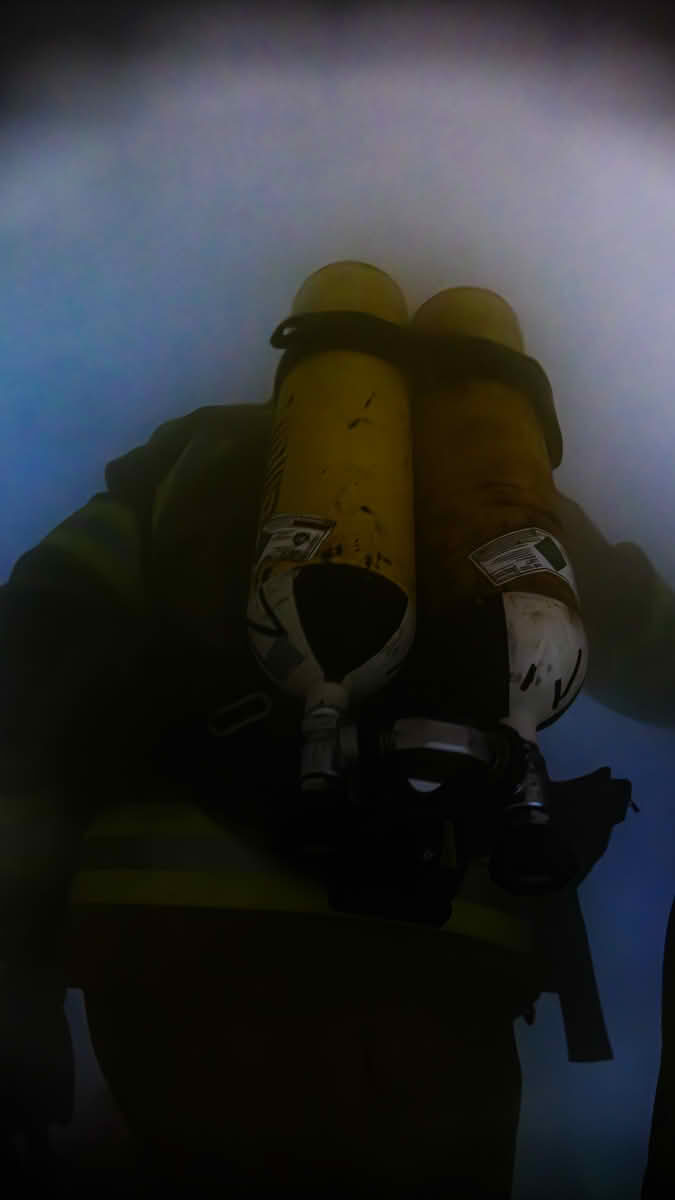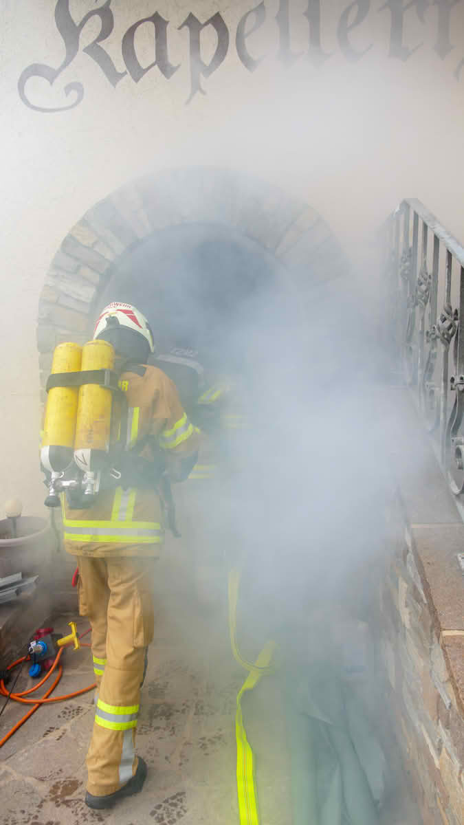 Kellerbrand: Auch im Kellerbereich wurde unter Nullsicht gearbeitet, um den simulierten Brand zu bekämpfen und das Vorgehen bei extrem eingeschränkter Sicht zu trainieren.