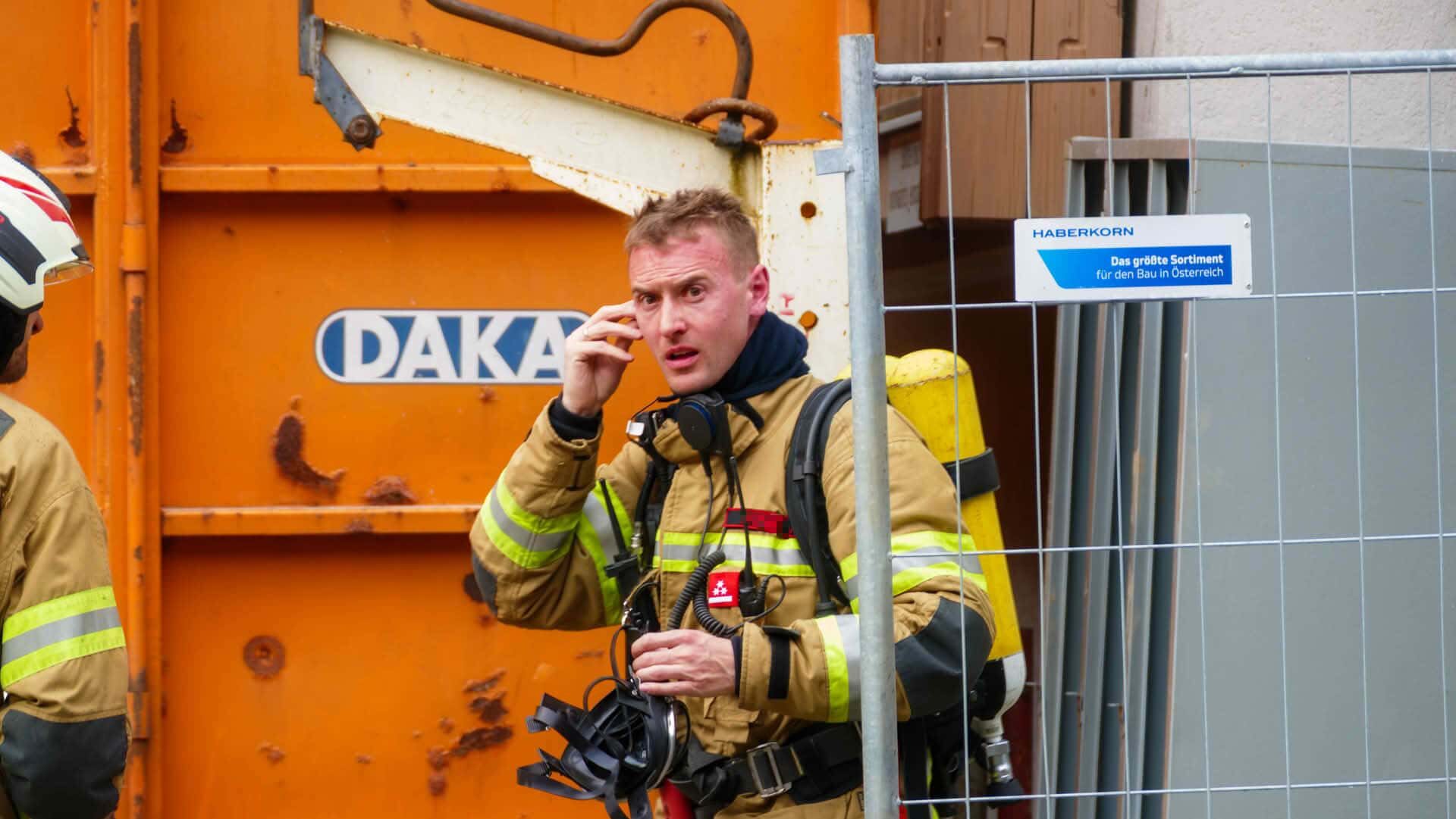 Zimmerbrand: Im zweiten Stock war ein Zimmerbrand zu löschen. Erschwert wurde der Einsatz durch starke Verrauchung des Zimmers sowie des Stiegenhauses mittels Nebelmaschinen.