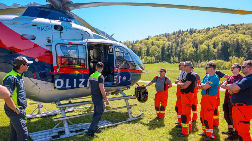 Weiters hatten die Teilnehmer aus dem Bezirk Flachgau und der Berufsfeuerwehr Salzburg die Möglichkeit, die sicheren Handgriffe in Bezug auf einen Hubschraubereinsatz der Flugpolizei vom Typ Eurocopter 135 zu üben. Der Pilot und der FLIR-Operator informierten die Feuerwehrkameraden über Sicherheitsmaßnahmen sowie Durchführungsrichtlinien bei der Unterstützung von Waldbrandeinsätzen.