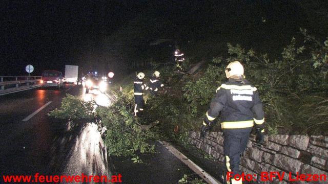 Ohne jegliche Vorzeichen fegte in der Nacht vom 23.07.2009 ein orkanartiger Sturm durch das Ennstal, der zwar nur wenige Minuten andauerte, aber trotzdem hohen Sachschaden verursachte. Für die Einsatzkräfte galt es vorwiegend durch Windwurf umgestürzte Bäume von Straßen, Bahnstrecken, Hausdächern und Stromleitungen mittels Motorsägen und schwerem Gerät zu entfernen.