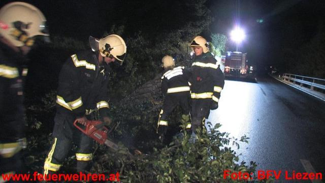 21:45 Uhr – FF Weißenbach bei Haus (umgestürzte Bäume / auch auf ÖBB-Bahnstrecke)
