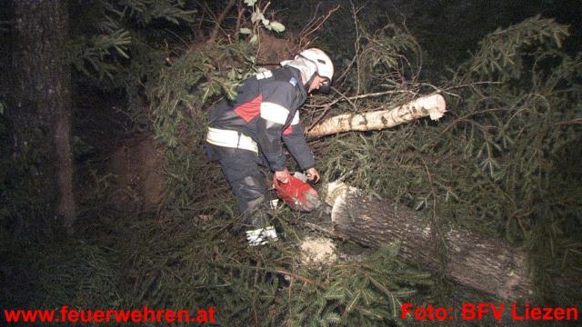 21:43 Uhr – FF Öblarn (umgestürzte Bäume im Gemeindegebiet), LF und MTF mit 16 Mann