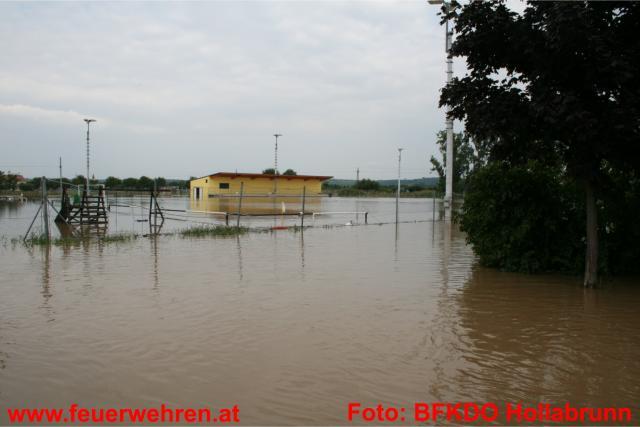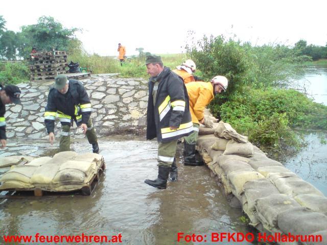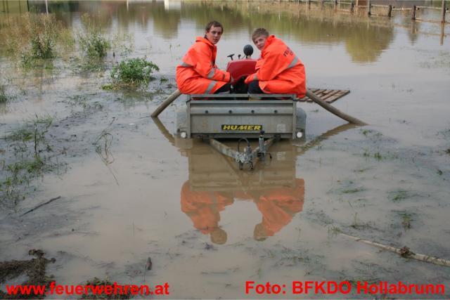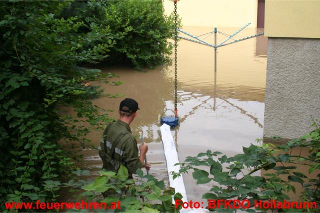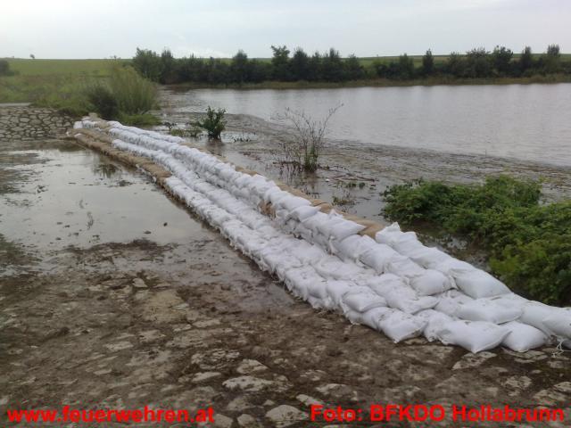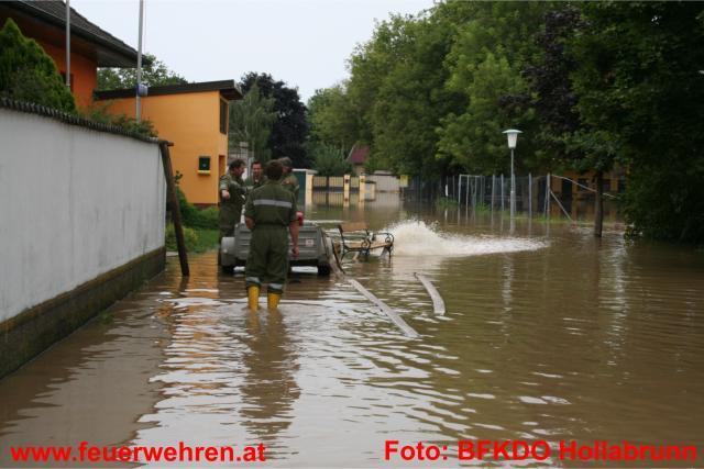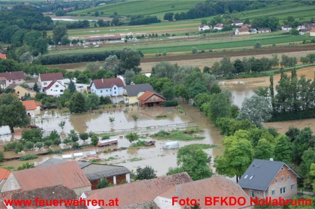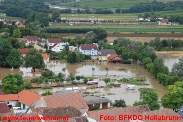 83 Feuerwehren aus dem Bezirk sowie 5 Feuerwehren aus dem Mistelbacher Bezirk stehen den Betroffenen helfend zur Seite. Im Bezirk Hollabrunn sind seit 7:22 Uhr unzählige Feuerwehrmitglieder mit Sicherungsmaßnahmen, Auspumparbeiten und Aufräumarbeiten beschäftigt. Besonders betroffen sind die Orte Zellerndorf sowie Hadres. Es wurde Katastrophenalarm an der Pulkau gegeben. Die Pulkau ist in Jetzelsdorf 4,64 weiter steigend (Stand 20:30 Uhr). Der Durchfluss ist größer als der eines 100 jährigen Hochwassers.
