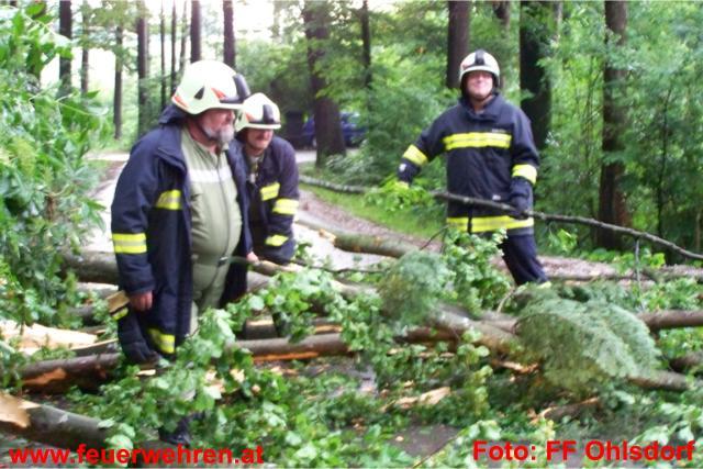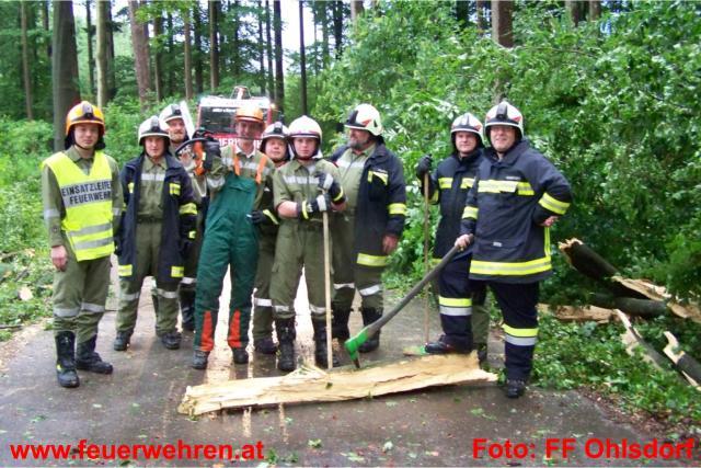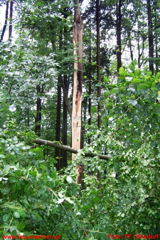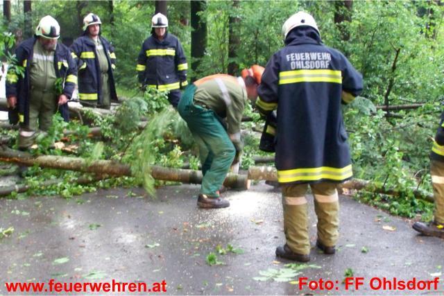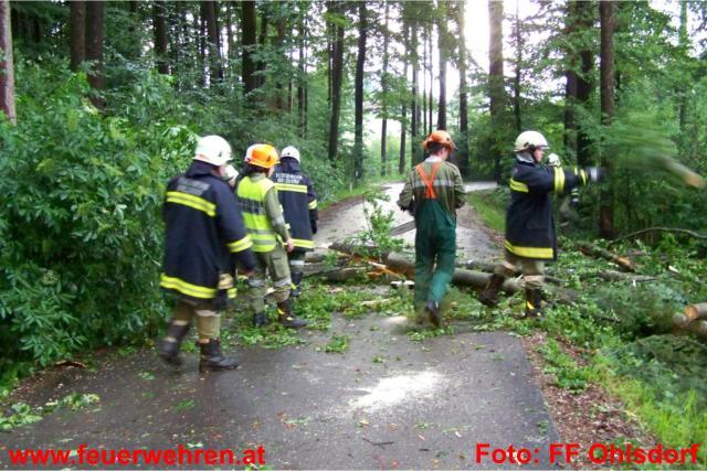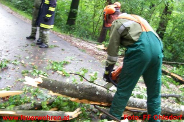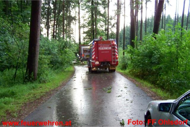 Nach dem Unwetter vom 22. Juni 2011 wurde die Feuerwehr Ohlsdorf um 19:57 Uhr von der Oö. Landeswarnzentrale zum bereits 80. Einsatz im Jahr 2011 alarmiert. Im sogenannten Haselwald stürzte ein Baum nach einen Blitzschlag auf die Fahrbahn und versperrte diese komplett.