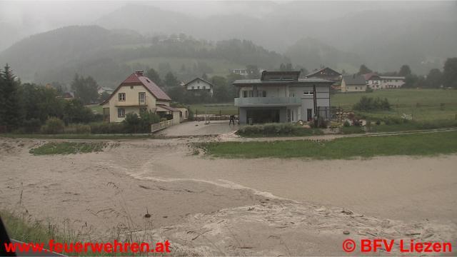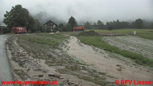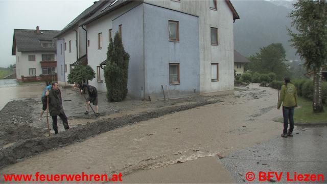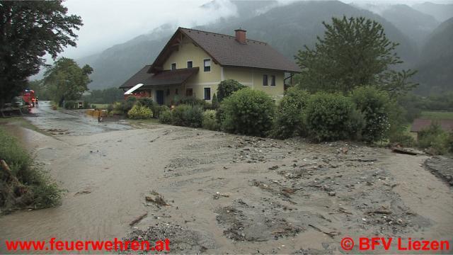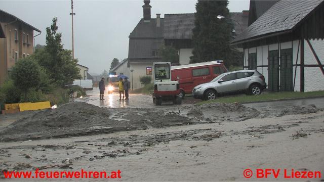 Im Bezirk Liezen sind derzeit 40 Feuerwehren der Abschnitte Paltental, Liezen, Irdning und Gröbming im Einsatz. Der Schwerpunkt der Einsätze richtet sich aktuell auf den Ort Treglwang und Trieben. Nach starken Vermurungen, Erdrutschen und großflächigen Überschwemmungen wurden mit schwerem Gerät künstliche Dämme errichtet, um die Wassermassen so gut als möglich durch den Ortskern durchzuleiten.