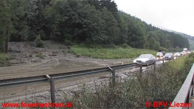 Am Abend wurde auch noch die Pyhrnautobahn zwischen Gaishorn und Trieben in Fahrtrichtung Graz von einer Mure verschüttet, dabei wurden zwei Fahrzeuge erfasst, eines davon in den Straßengraben gestürzt.