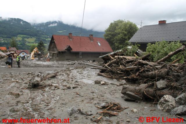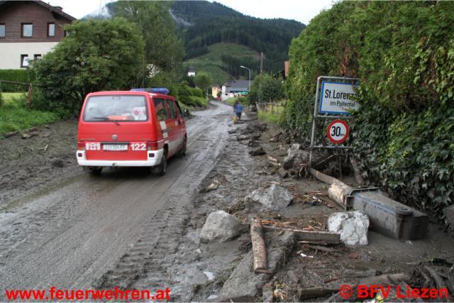 Die Aufräumarbeiten in St. Lorenzen sind im vollem Gange (Bilder). Die Feuerwehr steht mit rund 300 Mann im Einsatz, um Schlamm aus Häusern zu schaufeln, Keller auszupumpen, Stromaggregate für Elektrizität aufzubauen, Verkehrswege frei zu machen etc. Eine KHD-Einheit (Katastrophenhilfsdienst-Einheit) des Bereichsfeuerwehrverbandes Feldbach ist weiters zur Unterstützung bzw. Ablöse im Anmarsch.