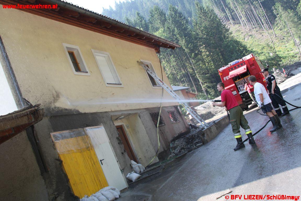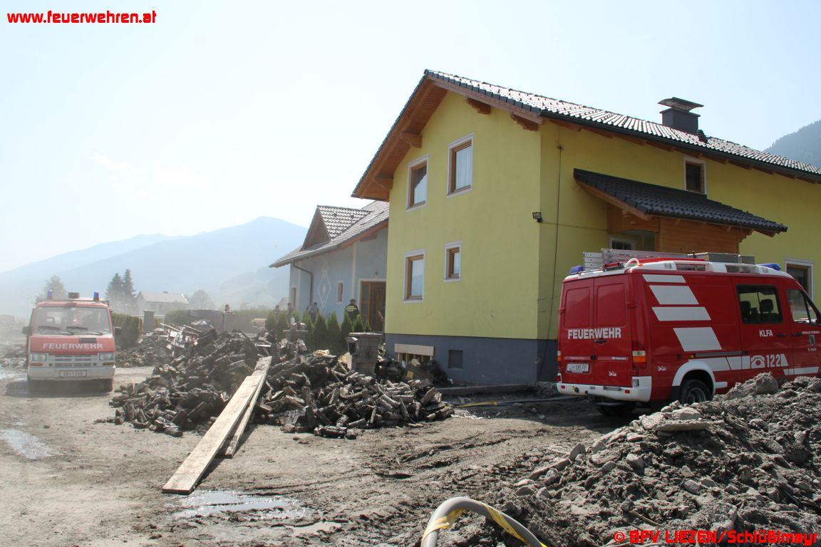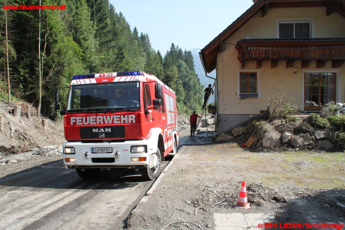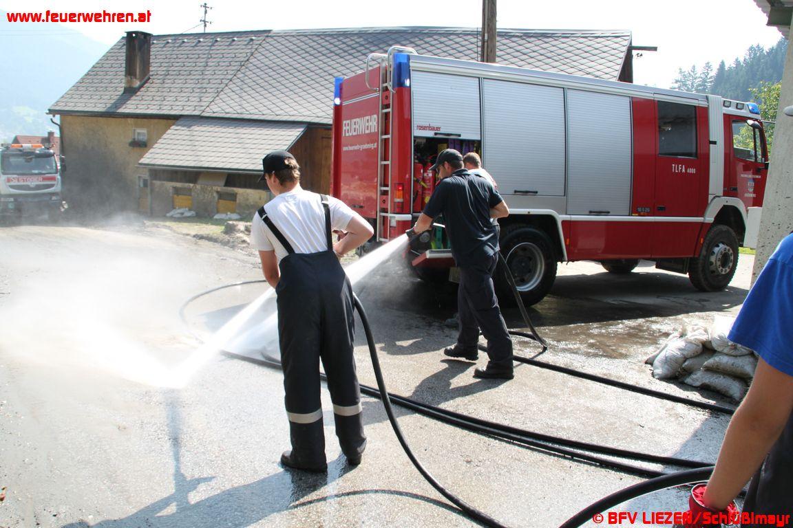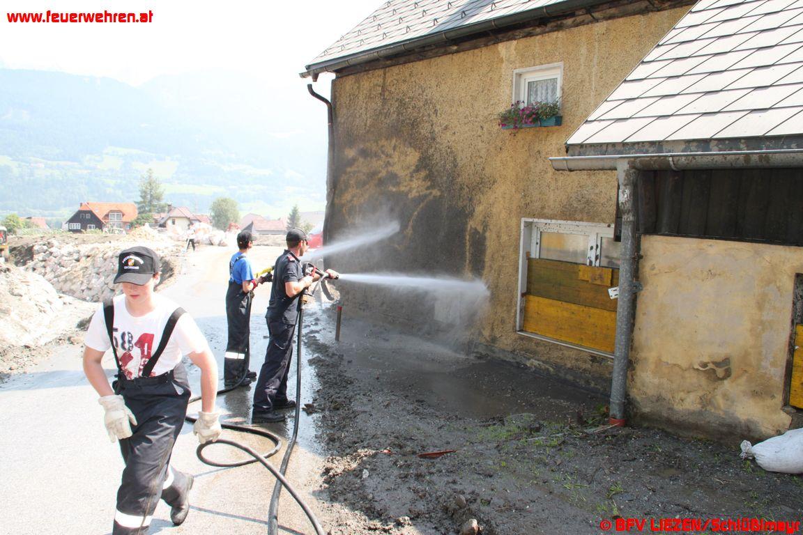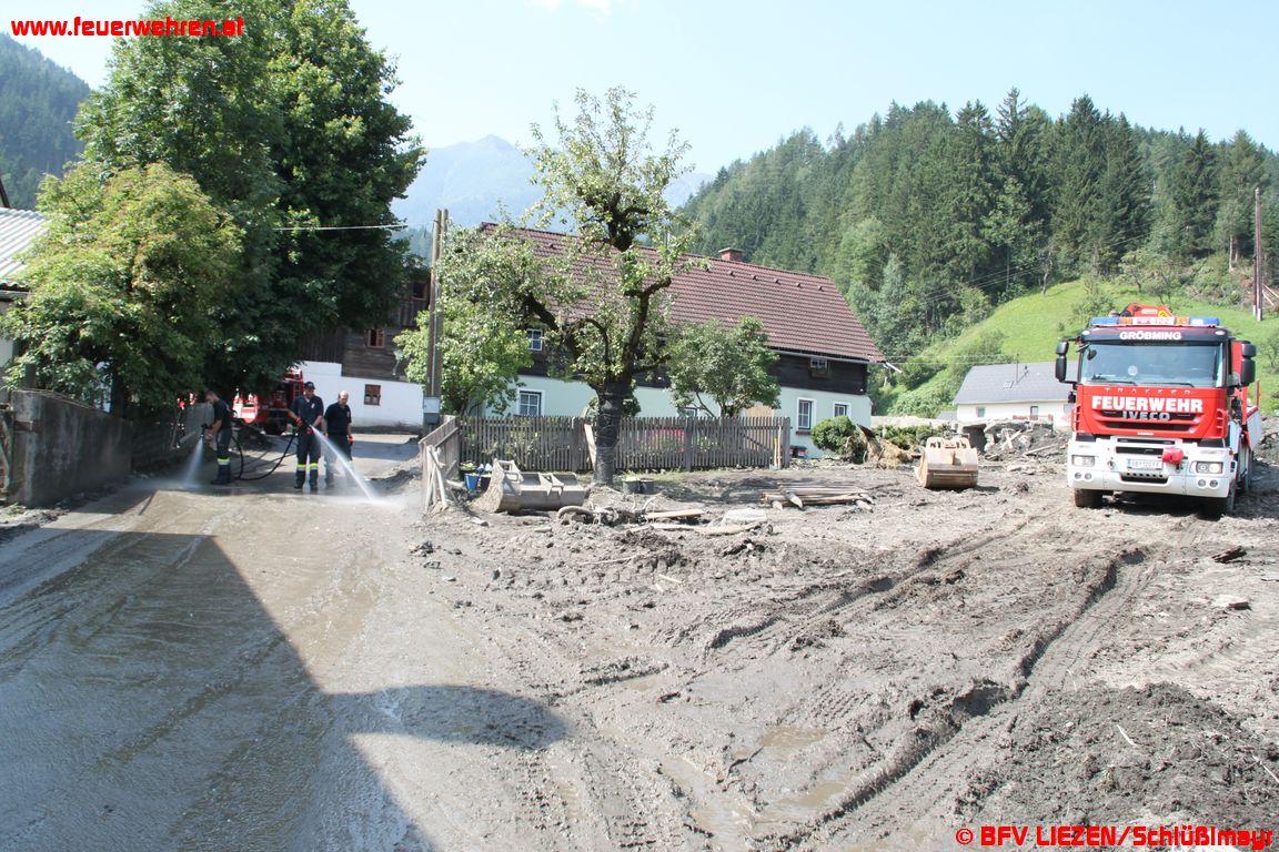 Es ziehen bereits wieder sturmartige Gewitter über den Bezirk Liezen und erste Feuerwehren gehen in den Unwettereinsatz (Rohrmoos-Untertal, Pyhrn, Liezen). Bis jetzt standen ja bereits 19 Feuerwehren des Bezirkes in St. Lorenzen im Einsatz, um die Ortschaft, konkret die Gebäude und Verkehrswege zu reinigen. Zu diesem Zweck waren viele Tanklöschfahrzeuge samt erforderlicher Mannschaft im Einsatz, am Nachmittag konnten die Arbeiten großteils abgeschlossen werden, parallel dazu laufen natürlich die klassischen Aufräumarbeiten weiter, auch noch mit Unterstützung des Bundesheeres.