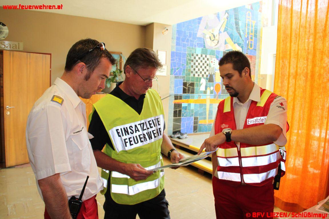 Seitens Feuerwehr waren/sind heute bereits 21 Feuerwehren mit 28 Fahrzeugen und 130 Mann im Einsatz, die Gesamteinsatzleitung und auch die Verpflegungsstelle ist nach wie vor im Rüsthaus der BtF Trieben-Werk untergebracht.