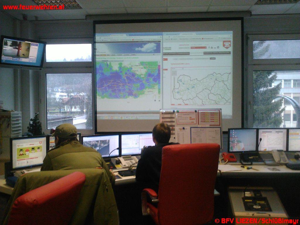 Im Dienst in der Alarmzentrale des BFV Liezen: ZDL Niklas Hösl, BI Stefan Schröck, FM Robert Missethon, ABI Walter Rieger, BR Heinz Hartl, HBI Markus Parteder