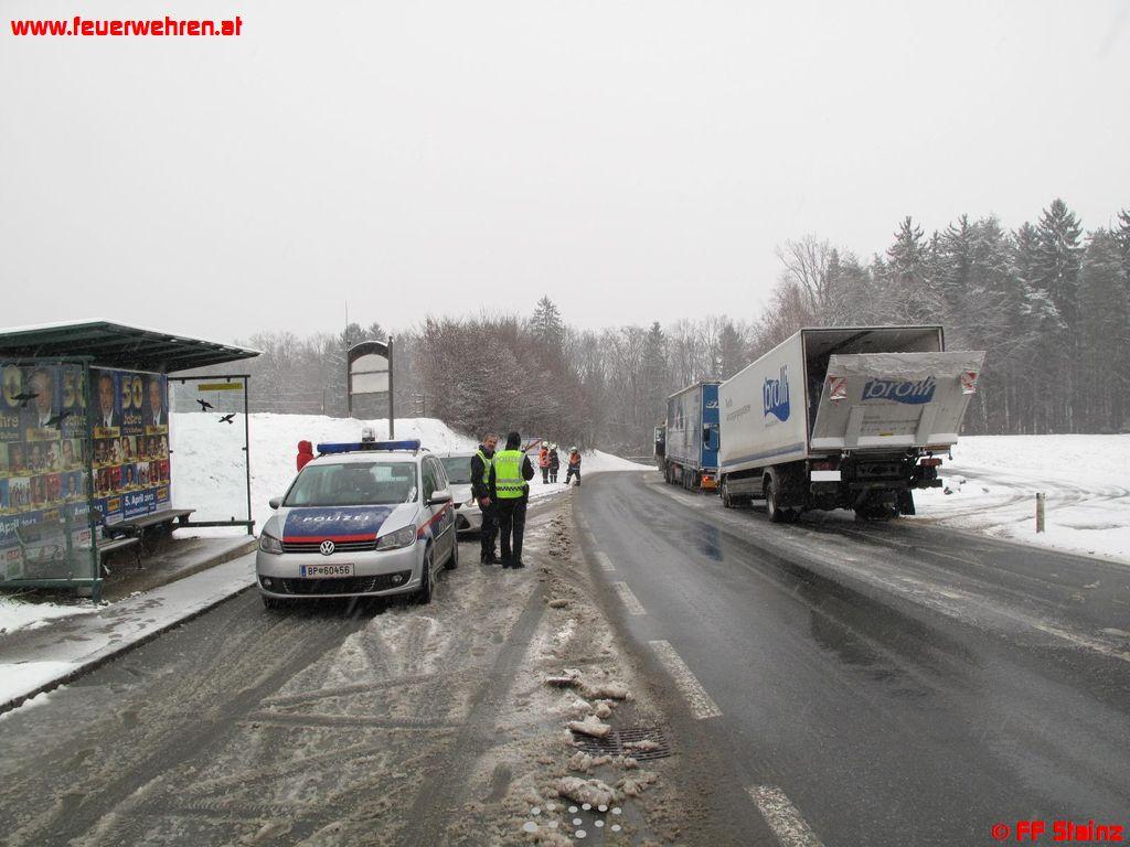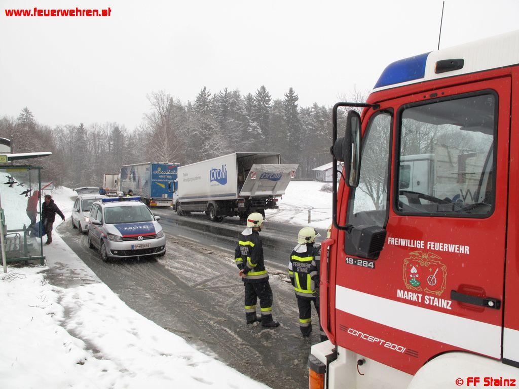 Glücklicherweise gingen die Unfälle glimpflich aus und es kam zu keinen Einsätzen, bei denen die Kameradinnen und Kameraden Menschen aus Gefahrenlagen befreien mussten. Entlang der B76 an den üblichen neuralgischen Punkten sorgten einige LKW Fahrer, die die geltende Kettenpflicht missachteten, wieder für die üblichen Verkehrsbehinderungen bei dieser Witterungslage (siehe Bilder).