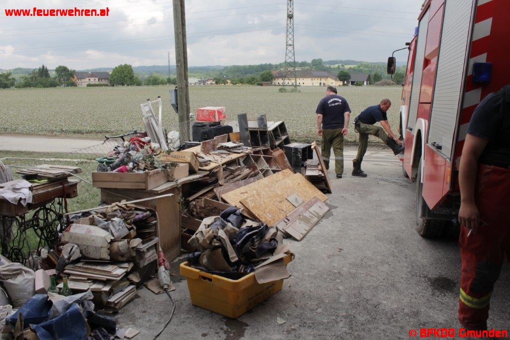 Danach wurden die zwei Züge mit 166 Mann und 32 Fahrzeugen in Einsatzgebiete aufgeteilt. Zahlreiche Keller mussten ausgepumpt bzw. ganze Häuser ausgeräumt werden. Von den einzelnen Feuerwehren werden detaillierte Berichte folgen.