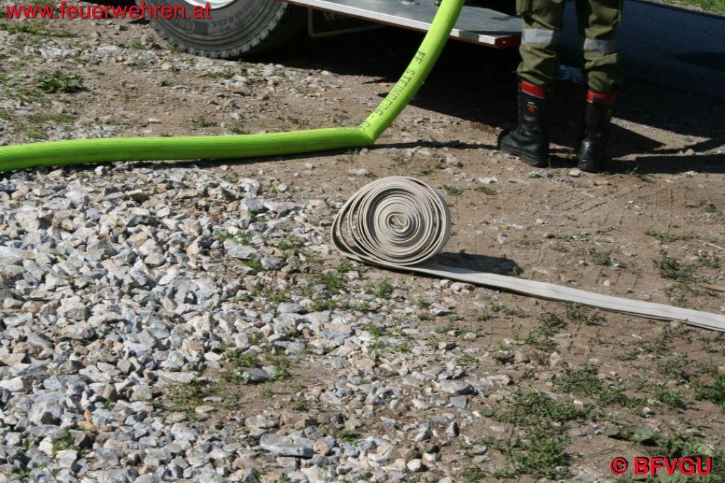 In angemessener Zeit konnten die Schlauchlinien entwickelt und das Wasser zu den Strahlrohren gepumpt werden. Nach drei anstrengenden Stunden konnte das erlösenden Kommando „Wasser halt! Zum Abmarsch fertig!“ gegeben werden.