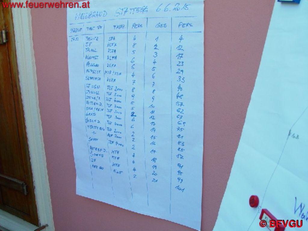 Am Samstag, 06. Juni 2015 wurde mit Beginn um 8 Uhr ein Waldbrand am Fuße des Grazer Hausberges, dem Schöckl geübt. Als Ursache kann, wie am 9. August 2013 hier in Stattegg, ein Blitzschlag angenommen werden. Aber auch Forstarbeiten, wie zuletzt am 21. April dieses Jahres in Übelbach, bei dem schon hohe Temperaturen, extreme Trockenheit und starker Wind herrschte, sind immer öfter Auslöser für großangelegte Löscheinsätze.