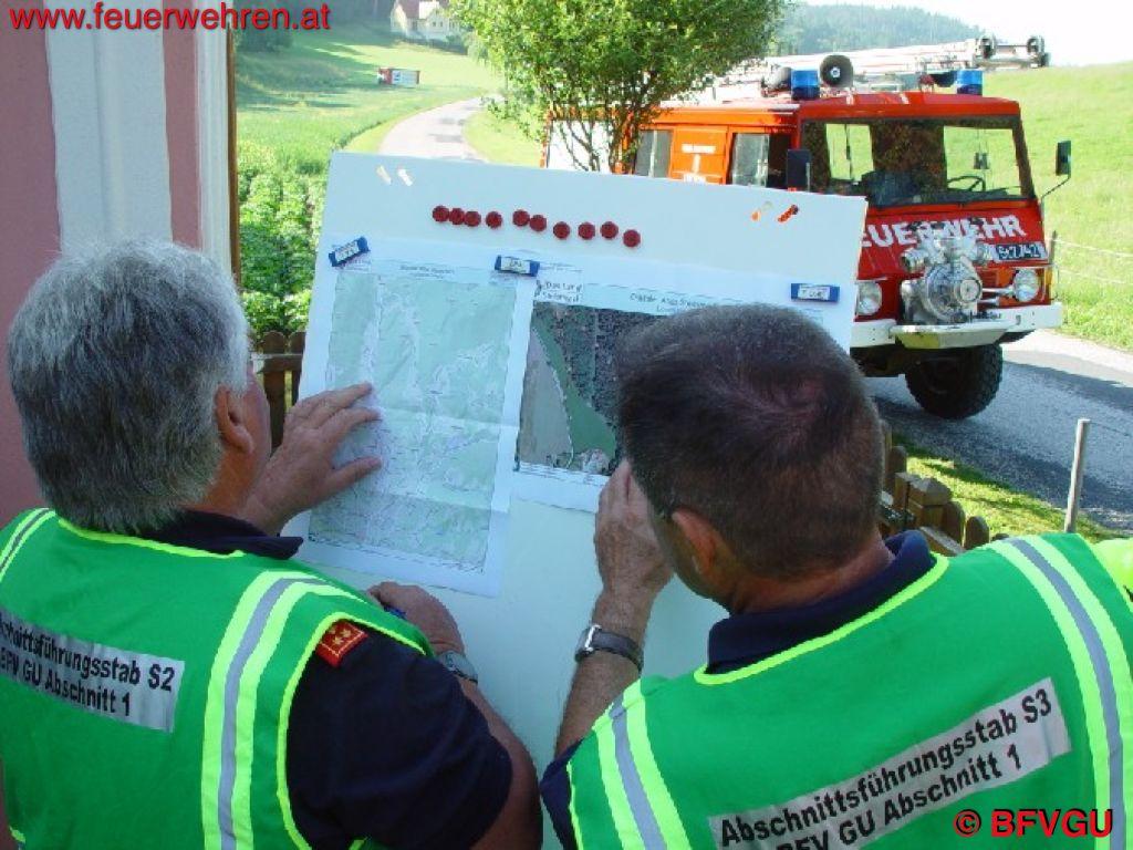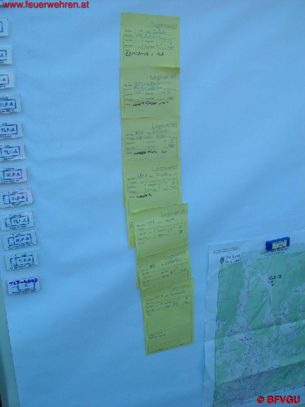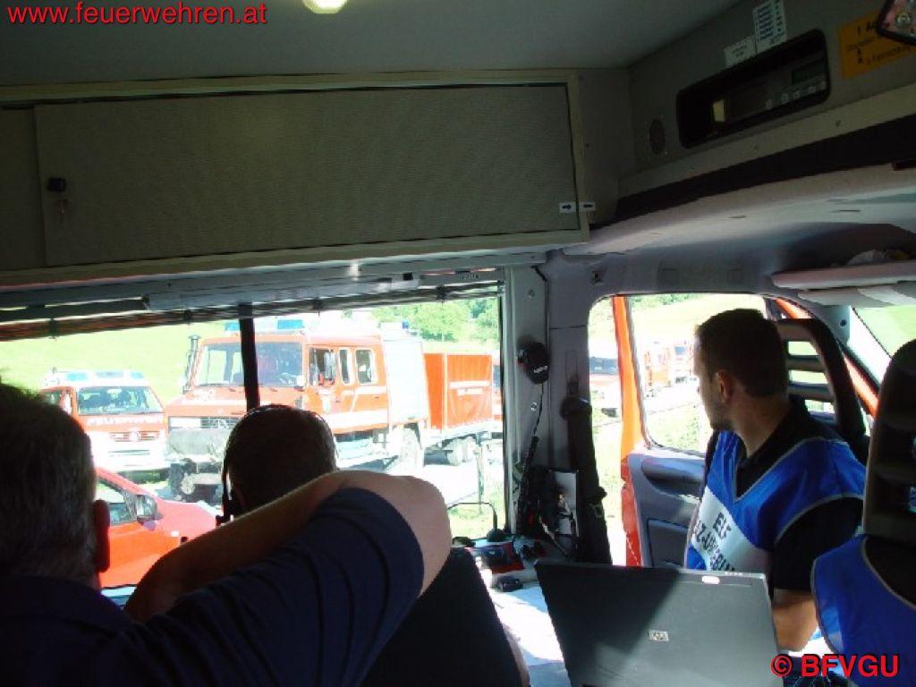 Der Stab setzte sich aus Stabsmitgliedern beider Abschnitte zusammen. Eine neue und auch Gewinn bringende Erfahrung. Die Mannschaft des Einsatzleitfahrzeuges des BFVGU komplettierte das Führungsmittel „Stab“.