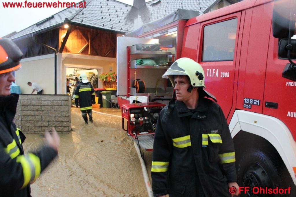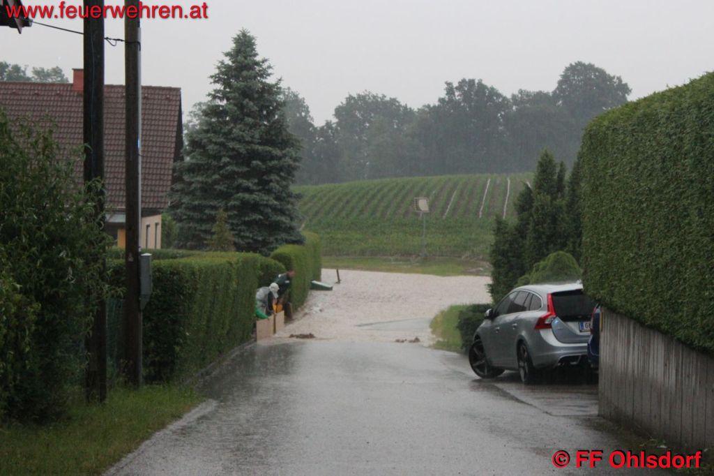 Am 08. Juni 2015 gegen 19:20 Uhr kam es in Ohlsdorf zu einem schweren Gewitter mit Hagel und Starkregen. Und wieder erwischte es die Ortschaften Weinberg und Sandhäuslberg am schlimmsten. Felder und Straßen wurden durch die Wassermassen zu reißenden Bäche und brachten nicht nur Wasser, sondern auch enorm viel Geröll und Schlamm in die Keller der betroffenen Häuser. Der Hagel verstopfte zusätzlich noch zahlreiche Kanäle, weshalb das Wasser nicht abrinnen konnte und sich so einen neuen Weg suchte.