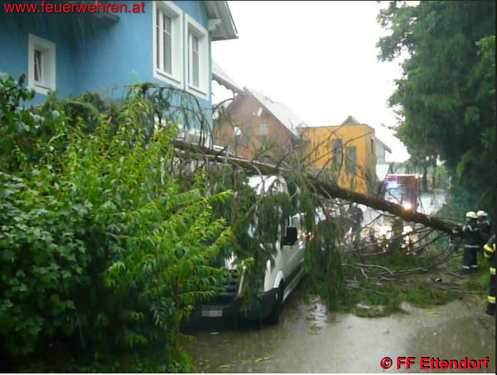 Begonnen hat die Einsatzserie kurz nach dem Eintreffen der Unwetterfront um 15:53 Uhr. Ein Baum war in Ettendorf bei Stainz auf einen Klein-LKW bzw. auch auf ein Haus gefallen. Keine 5 Minuten später wurde die Feuerwehr Stainz zu Pumparbeiten in ein Autohaus alarmiert.