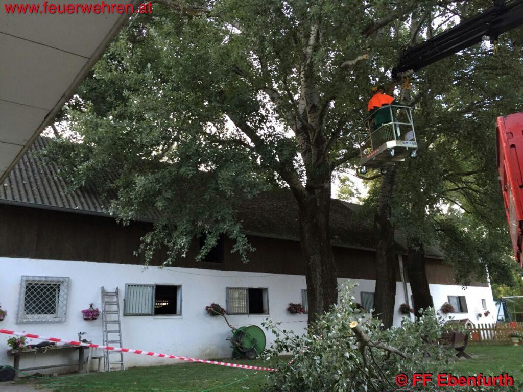 Am Donnerstag den 27. August 2015 um 18:38 Uhr wurde die Feuerwehr der Stadt Ebenfurth zu einem Sturmschaden „großer Ast droht auf Reitstall zu stürzen“ alarmiert.