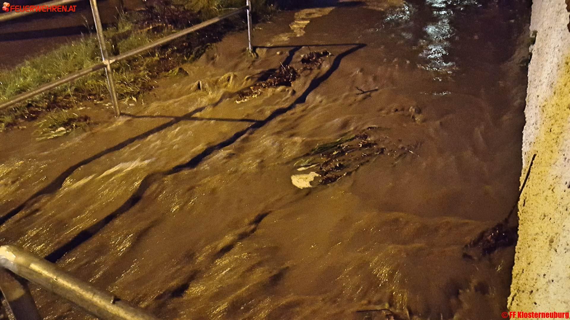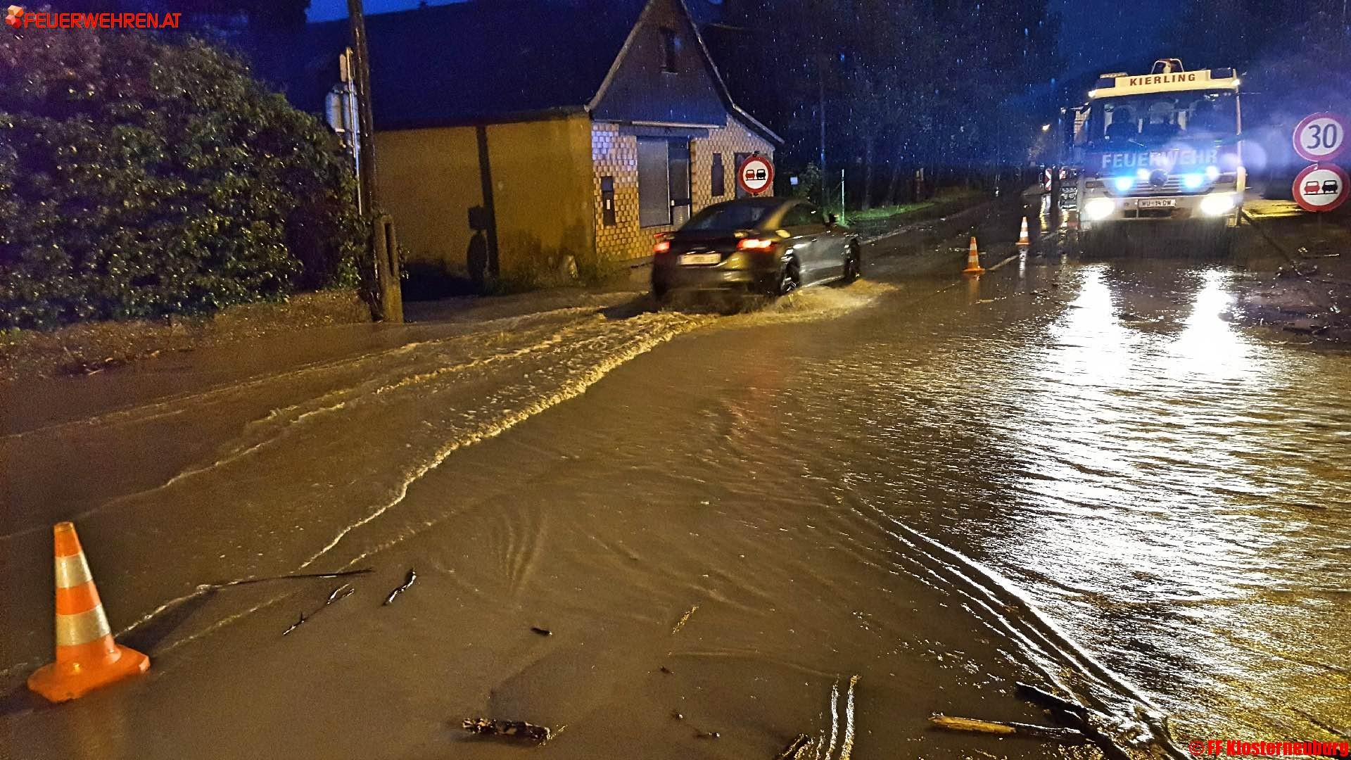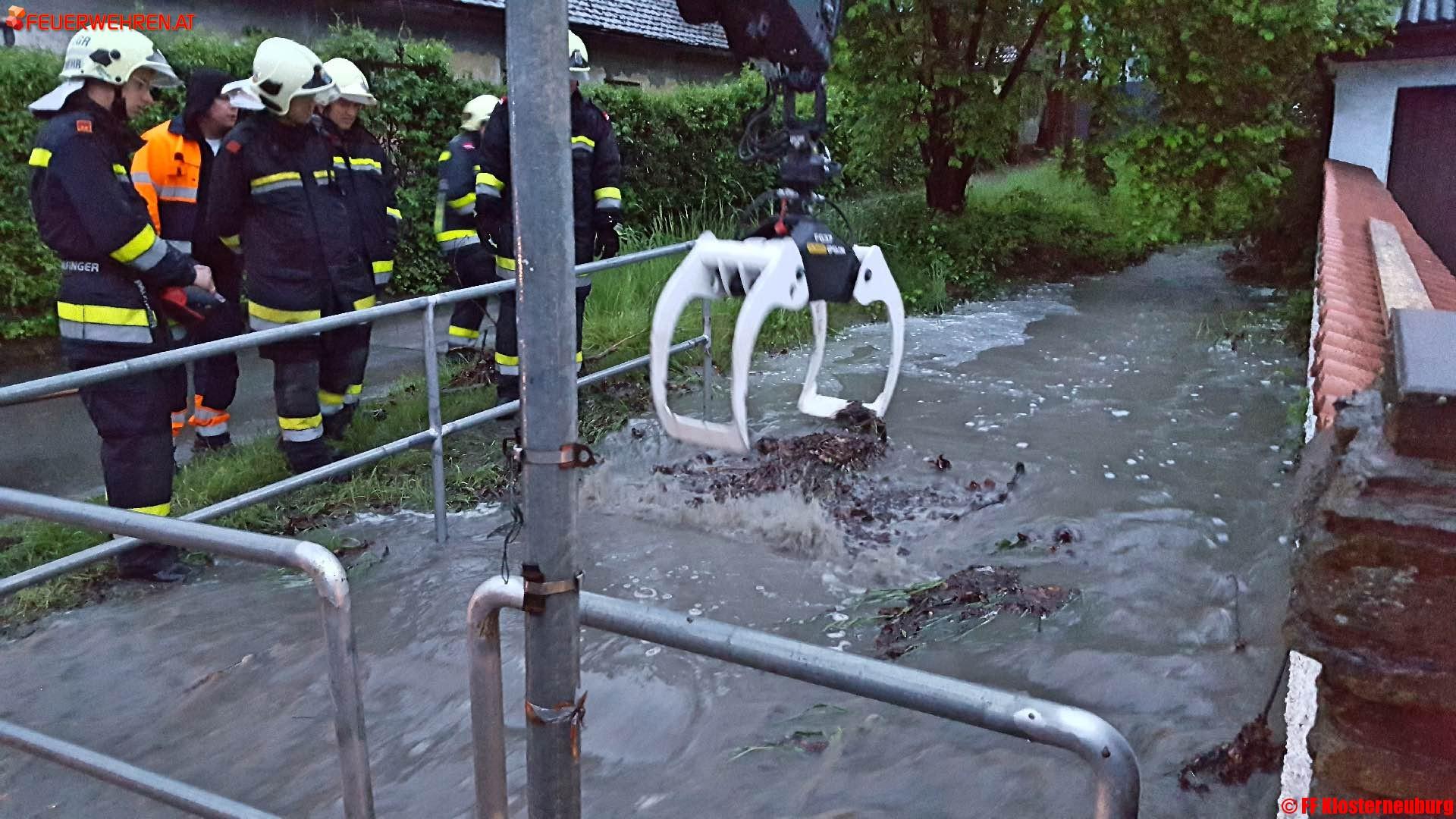Im Bereich der Hauptstraße kam es in den frühen Morgenstunden durch die langanhaltenden Niederschläge und Unwetter zu einer Verklausung des Haselbaches, wodurch die Straße überschwemmt wurde und die Feuerwehr Kierling die Stadtfeuerwehr zur Unterstützung anforderte. Mittels Wechselladefahrzeug-Kran und der dazugehörigen Schaufel konnte die Verklausung gelöst werden. Unterstützt wurden die Einsatzkräfte durch die Stadtgemeinde Klosterneuburg.