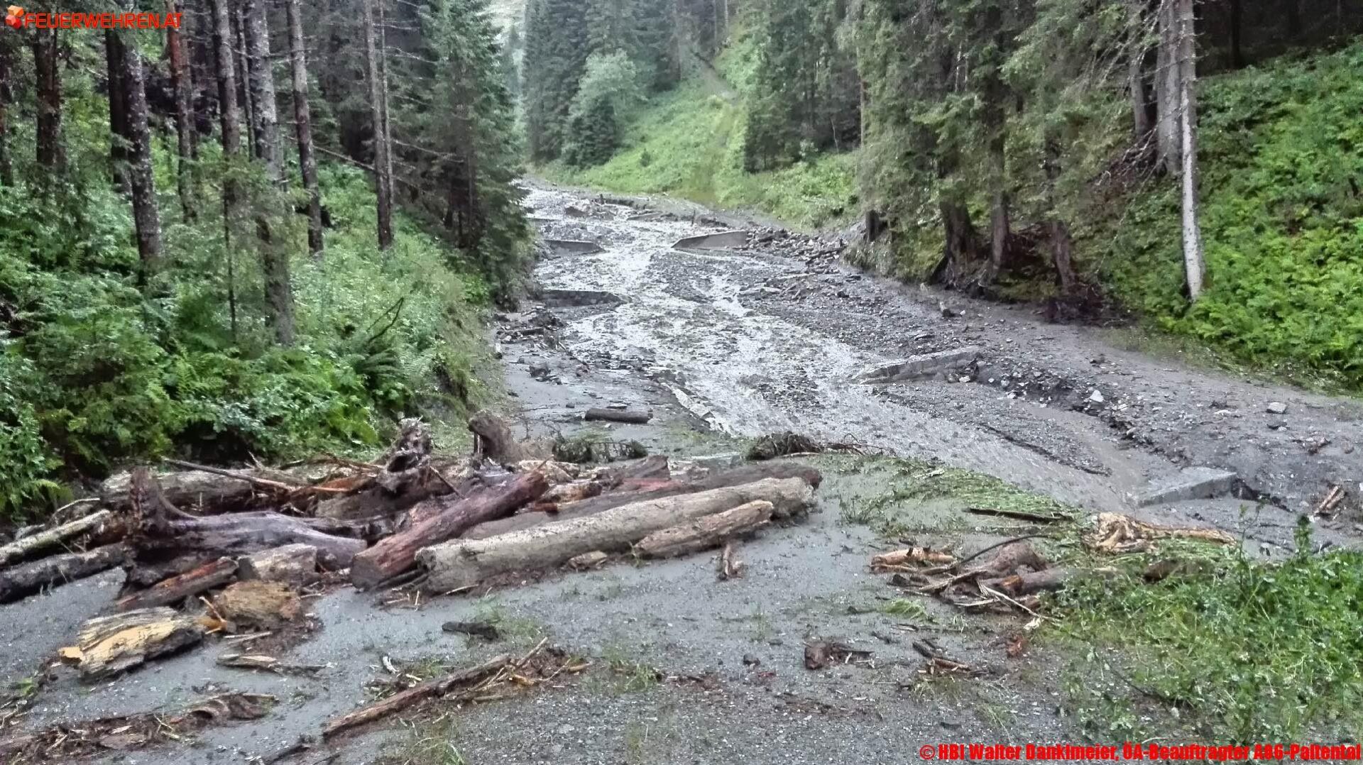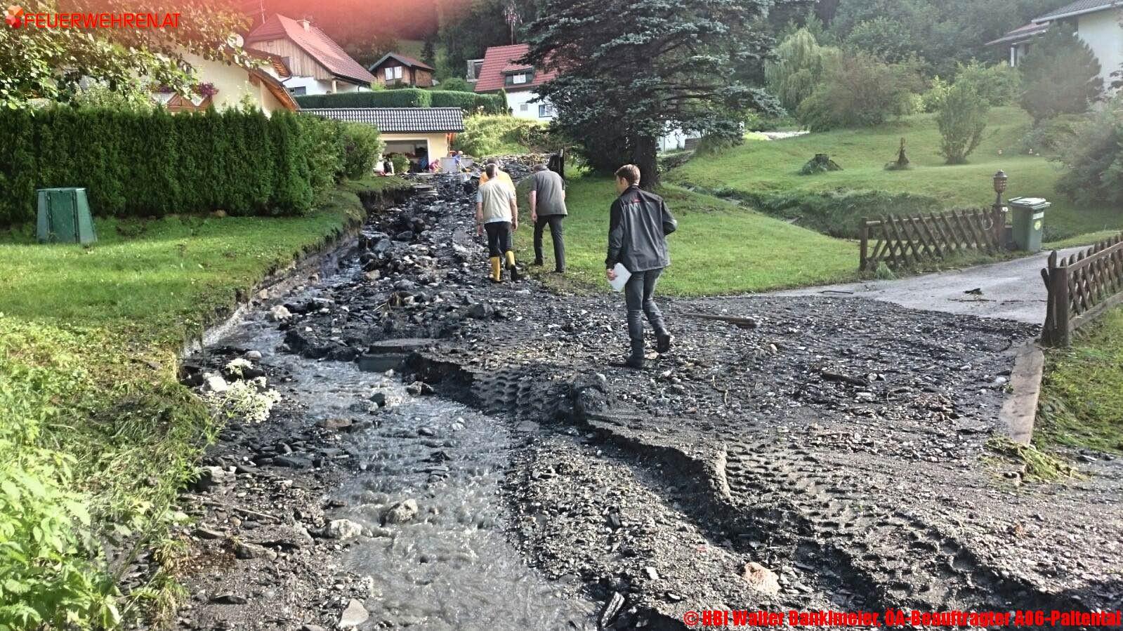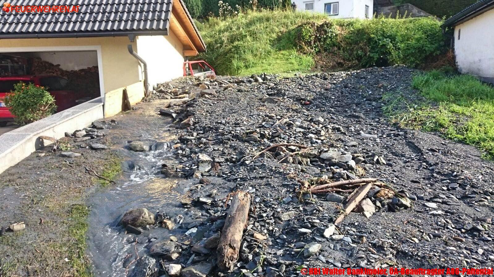 So dürfte es in St. Lorenzen im Zuge des bzw. hervorgerufen durch den außergewöhnlich starken Niederschlags im Zeitraum von knapp 2 Stunden zu einer Hangrutschung im hinteren und unbewohnten Bereich des Bachverlaufes gekommen sein.