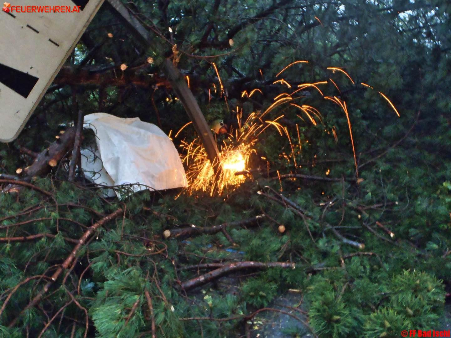 Ein heftiges Gewitter zog heute wieder einmal über das Ischler Tal. Heftige Windböen rissen Bäume um. Der genauso so heftige Regenfall lies Straßen und kleine Bäche zu reißenden Flüssen werden.