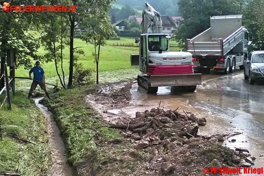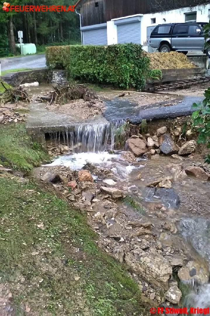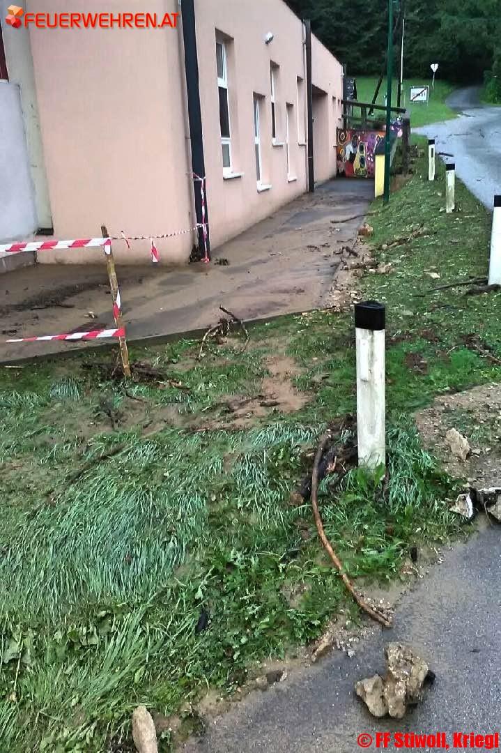 In Stiwoll hinterließen die Wassermassen Schäden an der Infrastruktur, wie Bilder vom dortigen Feuerwehrkommandanten HBI Günter Kriegl dokumentieren. Auch die Schule wurde von den Niederschlägen getroffen.