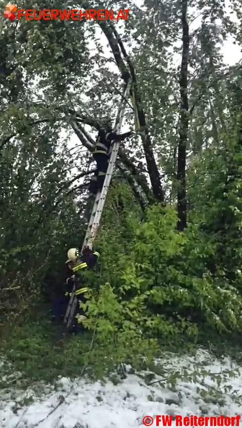 Beim Eintreffen von Pumpe Reiterndorf stellte Einsatzleiter E-BI Josef Mösenbichler fest, dass es sich jedoch um eine Telefon- und nicht um eine Stromleitung handelte und somit konnte sofort mit den Arbeiten begonnen werden.