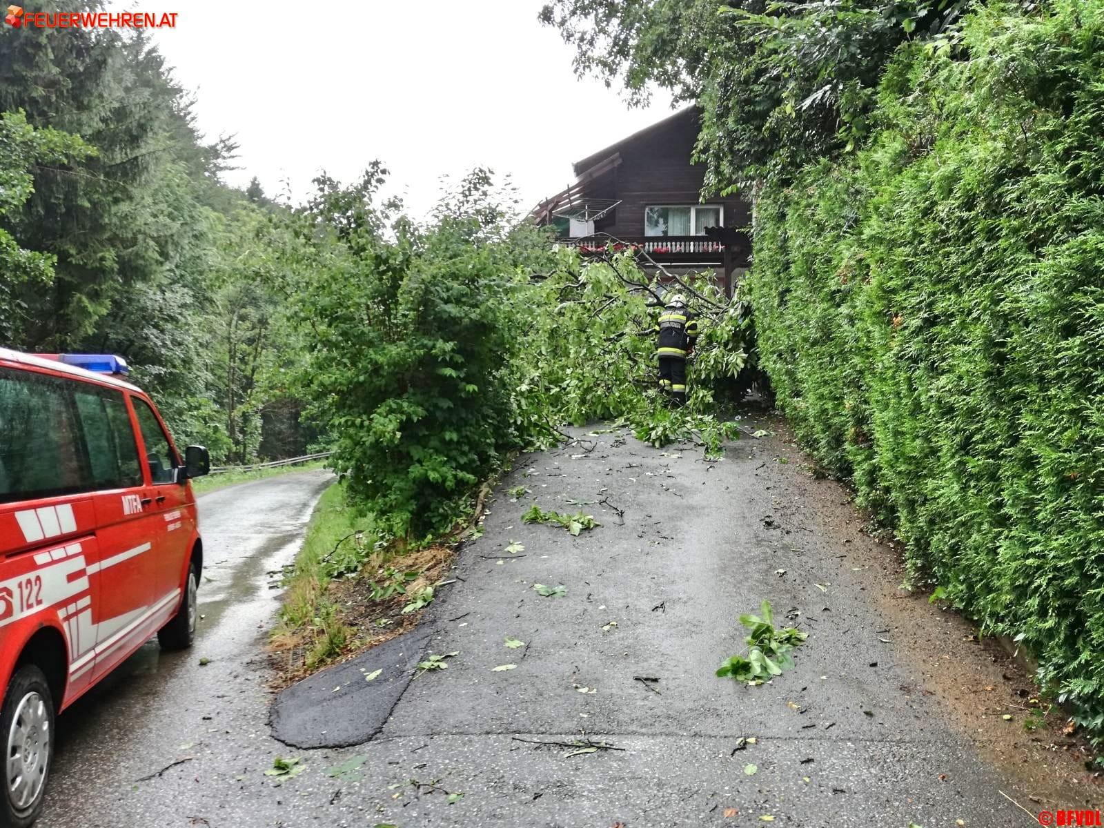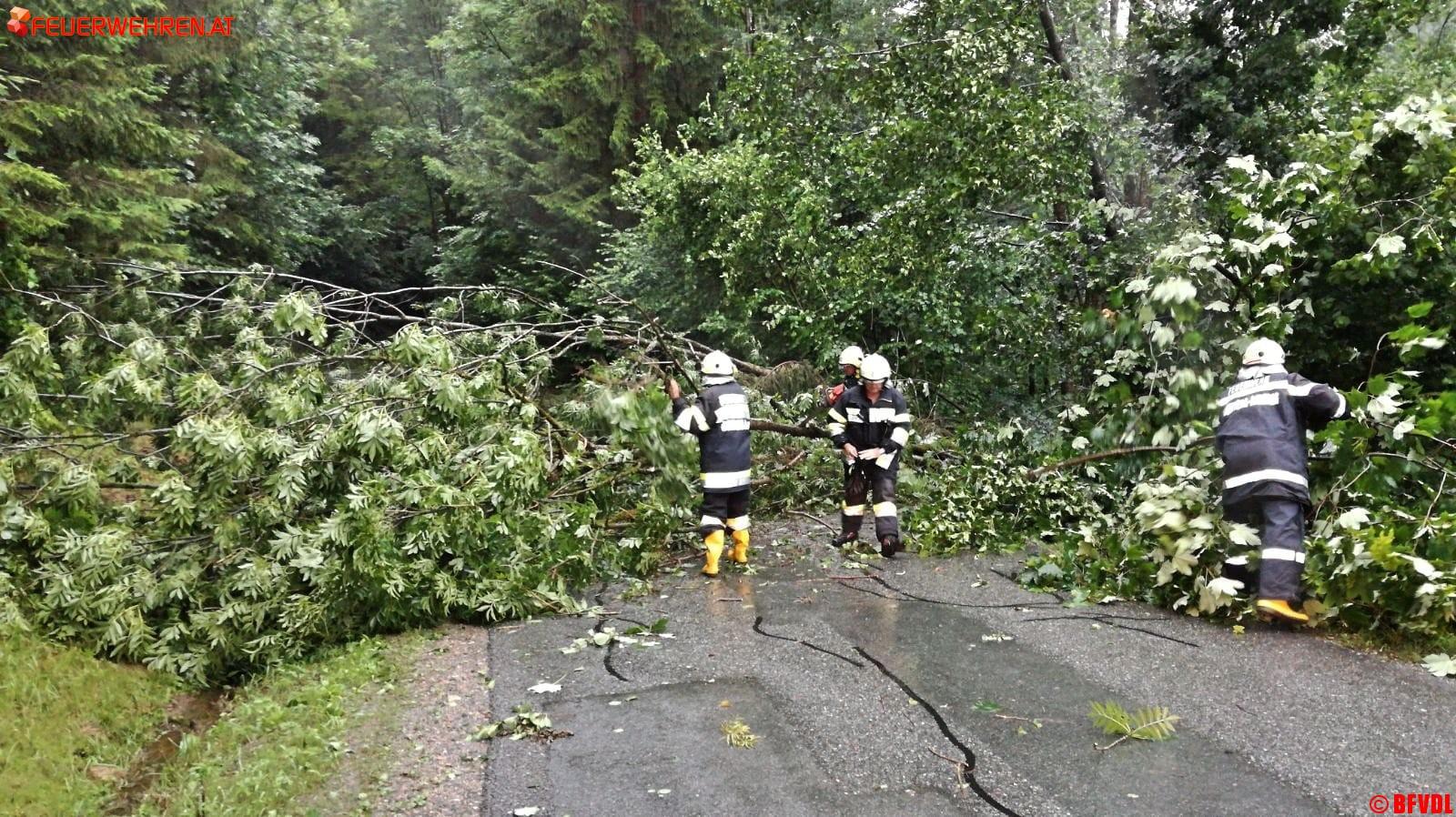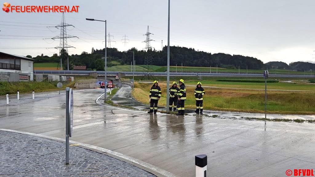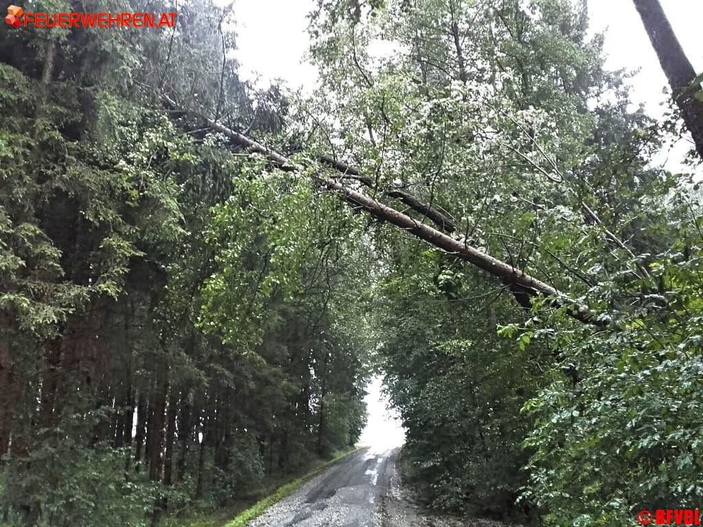 Zahlreiche umgestürzte Bäume, ein abgedecktes Dach in Pölfing Brunn bei der Tennishalle, unter Wasser gesetzte Keller und überflutete Straßen hielten die Freiwilligen Einsatzkräfte des Bereichsfeuerwehrverbandes an diesem Nachmittag auf Trab. Bis 14.30 Uhr liefen 46 Einsätze, 27 Feuerwehren mit 318 Einsatzkräften standen im Einsatz.