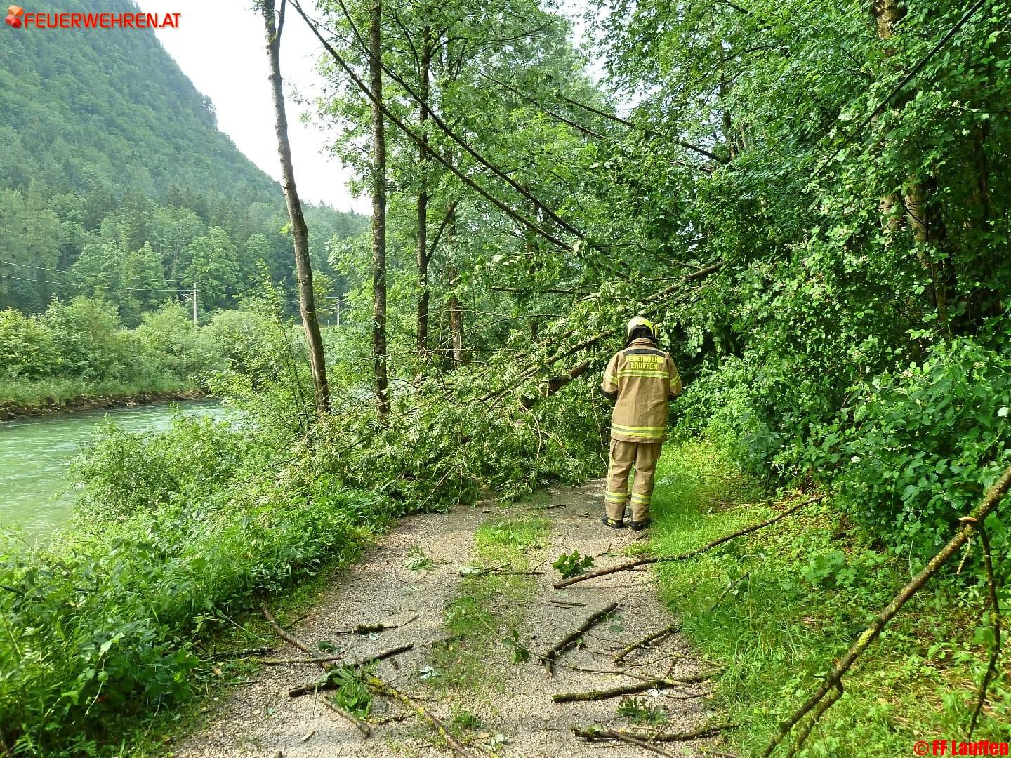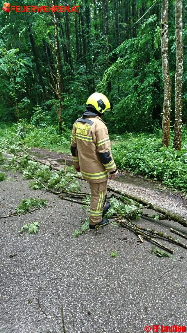 Die LWZ alarmierte aufgrund von herumliegenden Bäumen und Ästen auf der Engleitenstraße und „alter Radweg“ höhe ASZ bzw. Fahrzeugmuseum.