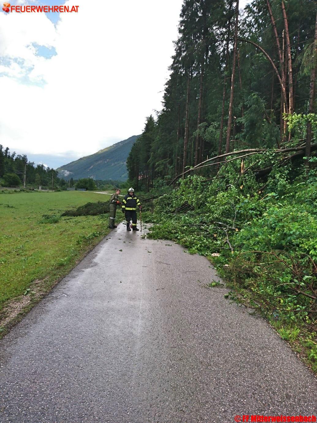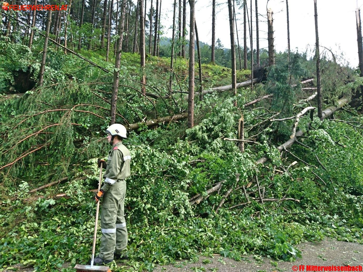 Am Montag den 12.06.2017 wurden die Kameraden der FF Mitterweissenbach zu einem Sturmschaden auf der B153 alarmiert. Ein PKW-Lenker hatte einen Baum gemeldet welcher über die Bundesstraße liegt.