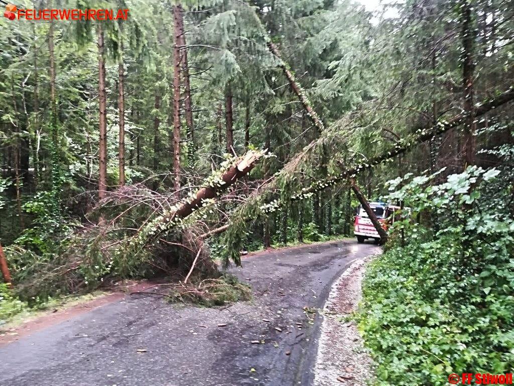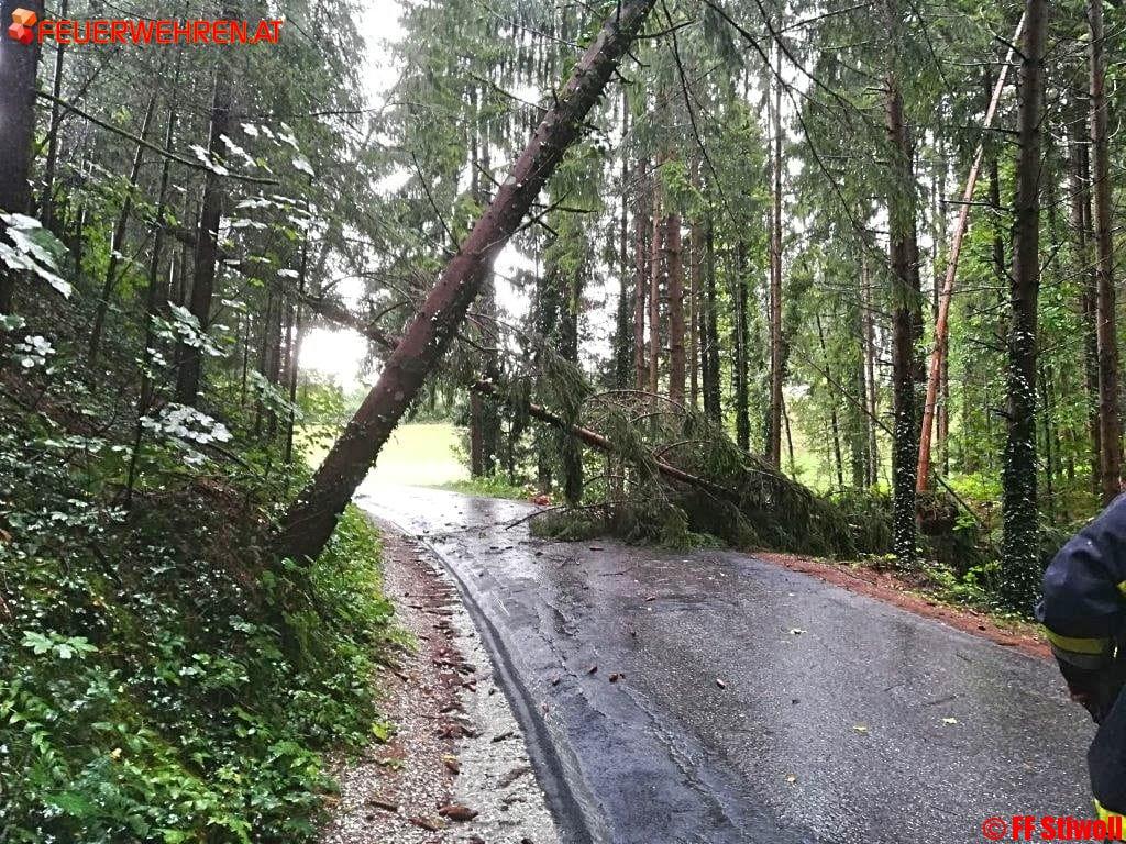 Nach einem kurzen aber intensiven Gewitter mit ca. 5 minütigem orkanartigen Sturm wurden zwei Gemeindestraßen durch umgestürzte Bäume blockiert.