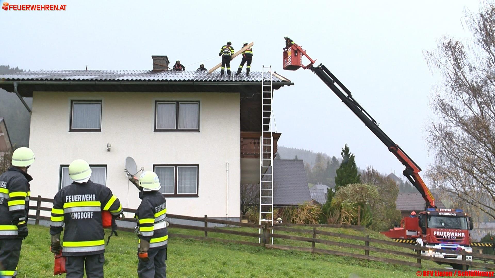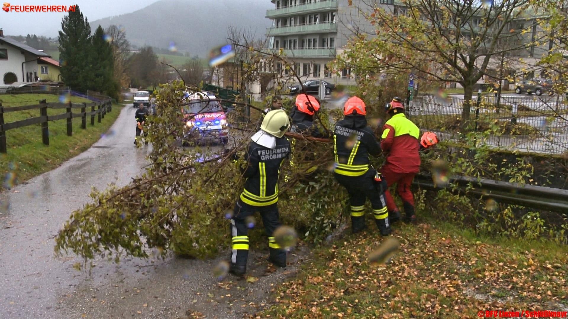Orkanartige Sturmböen haben auch den Bezirk Liezen heute nicht verschont, noch immer stehen zahlreiche Feuerwehren im sonntäglichen Einsatz, vorwiegend um umgestürzte Bäume von Hausdächern, Verkehrswegen, PKWs und Stromleitungen zu entfernen. In Palfau ereignete sich ein Felssturz, viele Straßen mussten zudem vorübergehend gesperrt werden, da viele Bäume umzustürzen drohen. Die Feuerwehren reparierten auch mehrere abgedeckte Hausdächer bzw. dichteten diese provisorisch mit Planen ab.