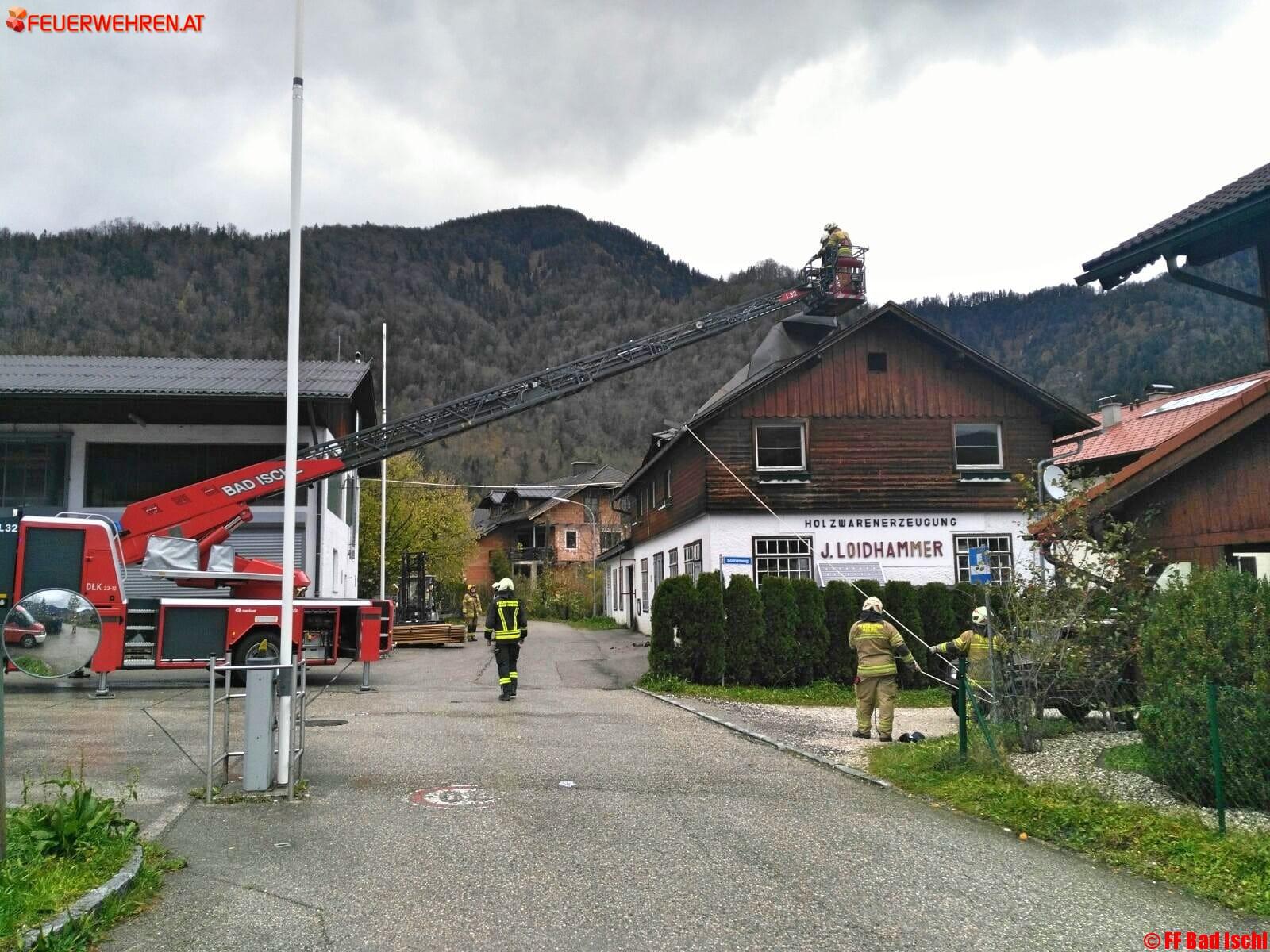 Um 09:25 Uhr erfolgte die nächste Alarmierung für die Freiwillige Feuerwehr Pfandl. Auf Grund des heftigen Sturmes wurde im Köhlerweg ein Dach abgedeckt. Beim Eintreffen der FF Pfandl wurde die Drehleiter der Hauptfeuerwache Bad Ischl zur Unterstützung nachalarmiert. Das Blechdach wurde von den Einsatzkräften gesichert. Im Anschluss erfolgten Sicherungsmaßnahmen.