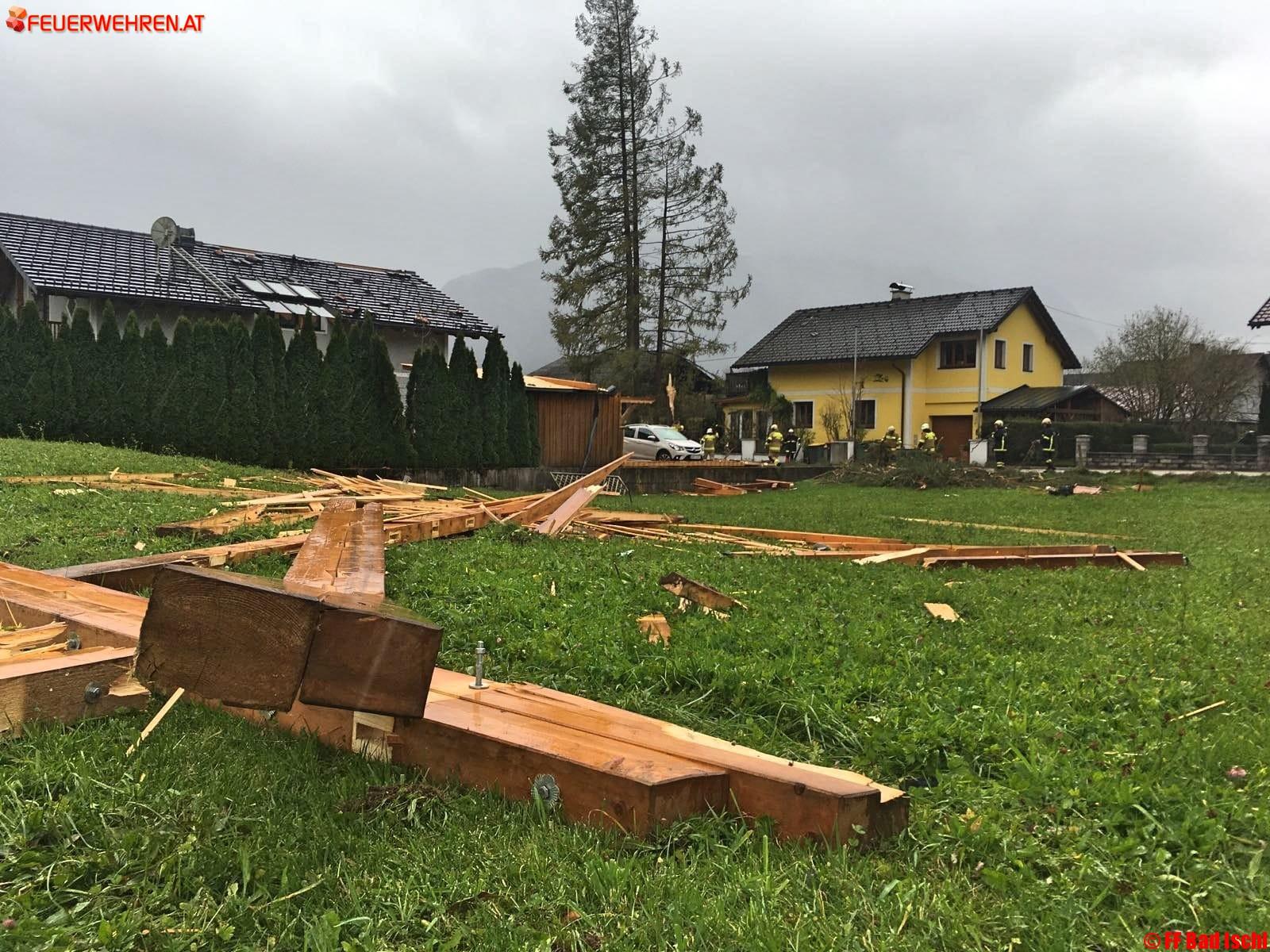 Ein Garagendach wurde auch in der Ortschaft Jainzen abgedeckt, deshalb erfolgte um 11:00 Uhr eine Alarmierung der Freiwilligen Feuerwehr Jainzen, die HFW Bad Ischl wurde zur Unterstützung nachalarmiert.